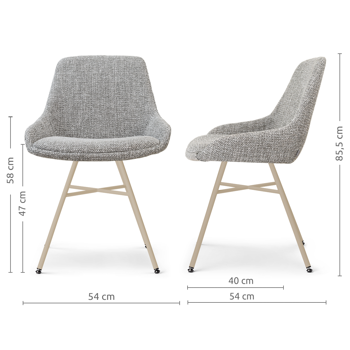 De Noa-Isa eetkamerstoel met beige onderstel van Nolon brengt comfort en een frisse uitstraling samen aan je eettafel. Het lichte ontwerp zorgt voor een rustige basis in je interieur en voelt tegelijkertijd uitnodigend aan. De zachte stoffen bekleding geeft de stoel een verfijnde en elegante look en draagt bij aan een warme, sfeervolle ruimte. De zitting met armleuningen is prettig gevormd en biedt goede ondersteuning, waardoor je ontspannen zit — ideaal voor lange diners of gezellige momenten aan tafel. Het witte metalen Noa onderstel vormt een stabiele en stevige basis en geeft de stoel een moderne, luchtige uitstraling. De kruisverbinding tussen de poten zorgt voor extra stevigheid, terwijl de verstelbare voetjes ervoor zorgen dat de stoel stabiel blijft staan op verschillende vloeren. Met zijn afgeronde vormen en tijdloze uitstraling past deze eetkamerstoel moeiteloos in een Scandinavisch of Japandi interieur. Een comfortabele en stijlvolle plek om samen te komen en te genieten van elk moment aan tafel. Tips & adviesMet een paar eenvoudige tips blijft je stoel mooi en prettig in gebruik: