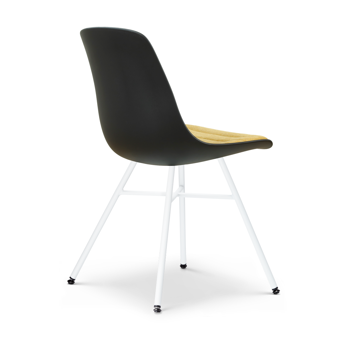 Noa-Liv eetkamerstoel zwart met warm oker zitkussen - wit onderstel