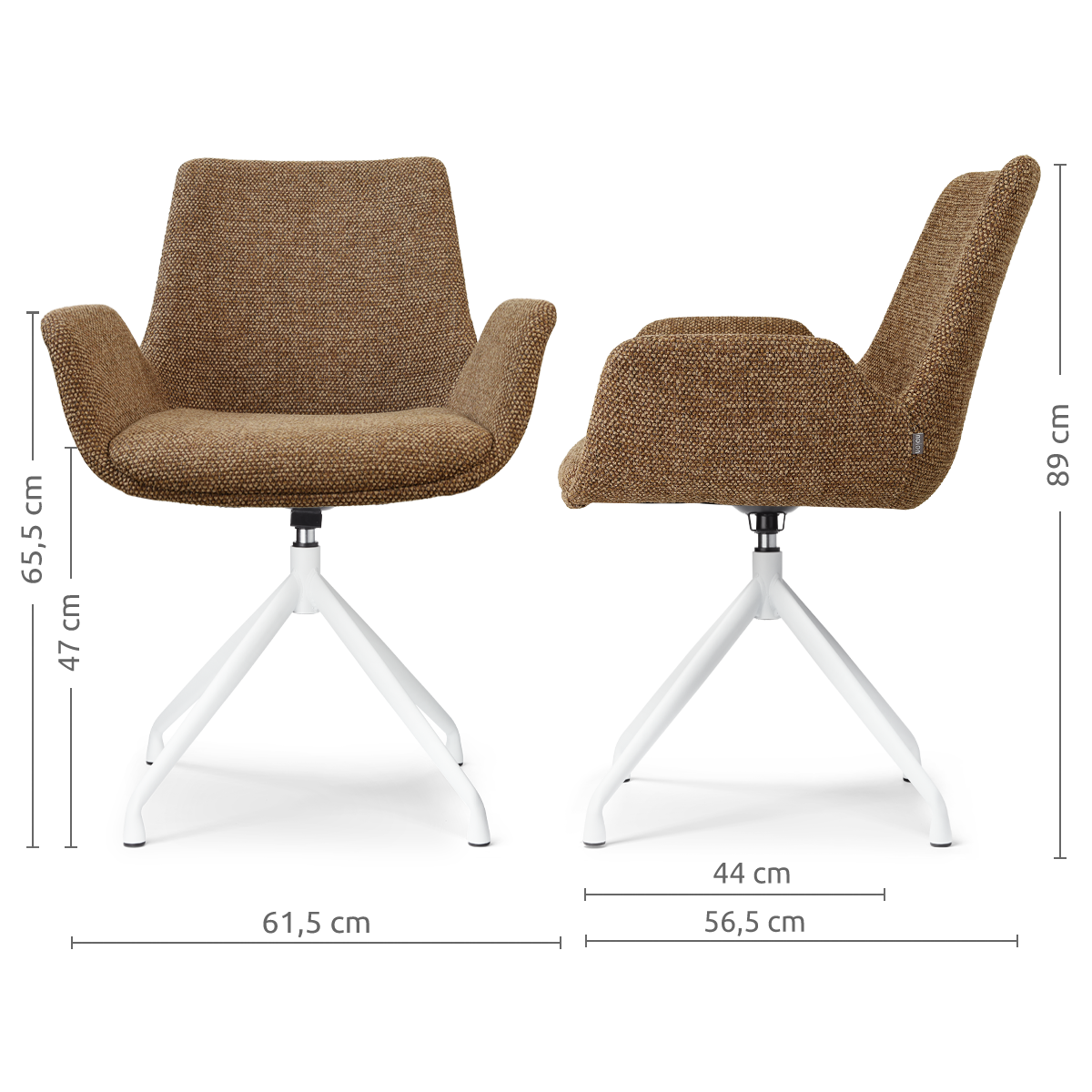 Nola-Eef draaibare eetkamerstoel bruin blend - wit onderstel