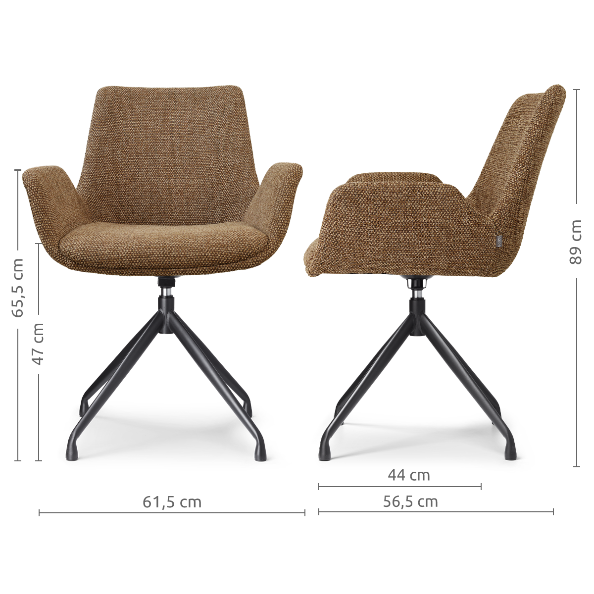 Nola-Eef draaibare eetkamerstoel bruin blend - zwart onderstel