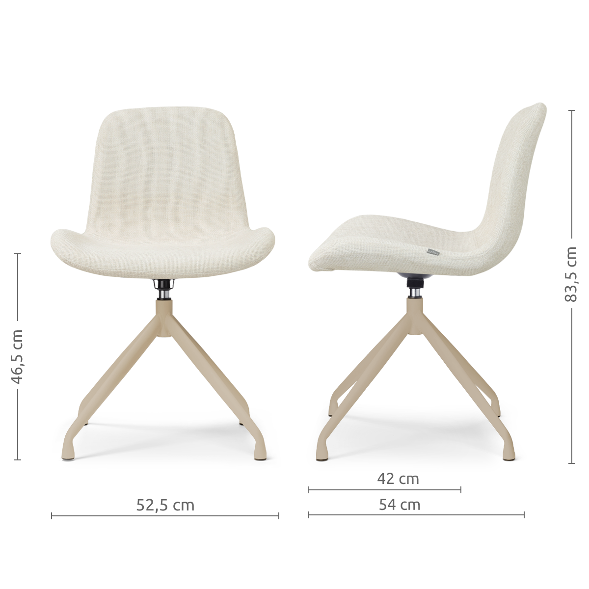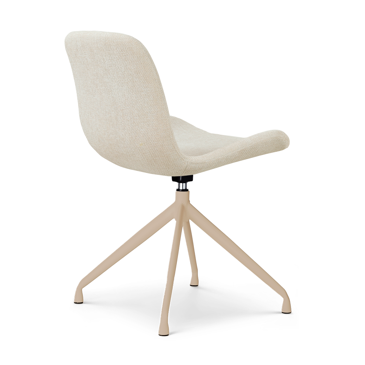 De Nola-Fé draaibare eetkamerstoel met beige onderstel heeft een compacte en elegante vorm die comfort en stijl op een subtiele manier samenbrengt.