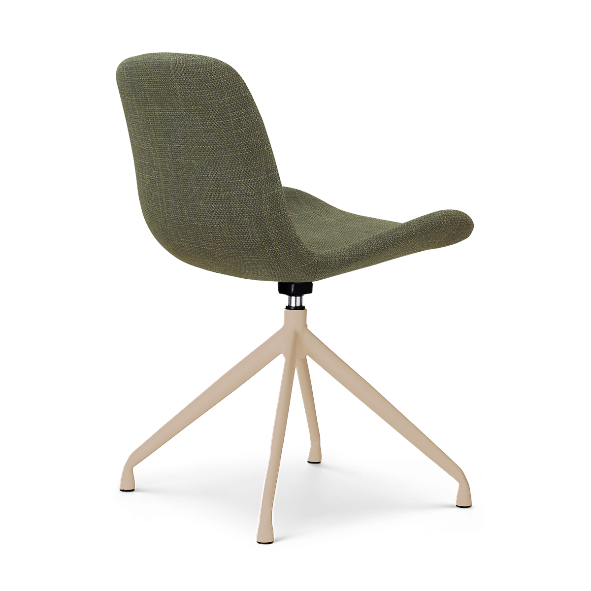De Nola-Fé draaibare eetkamerstoel met beige onderstel heeft een compacte en elegante vorm die comfort en stijl op een subtiele manier samenbrengt.