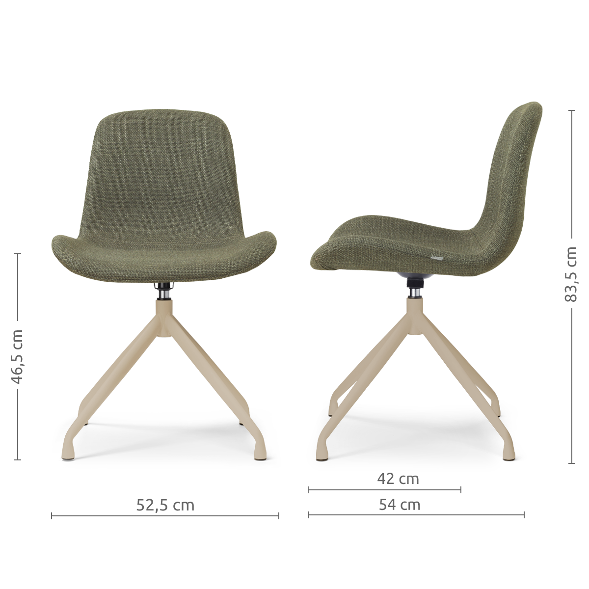 Combineer zoals het bij je past Deze draaibare eetkamerstoel van Nolon maakt deel uit van een mix & match collectie. De Fé-zitting is verkrijgbaar in 9 verschillende kleuren en het Nola draaibare onderstel is er naast beige ook in zwart en wit. Heb je al een zitting op het oog? Dan kun je kiezen uit meer dan 20 verschillende onderstellen van Nolon. En andersom werkt het net zo goed: dit onderstel laat zich combineren met verschillende zittingen uit de collectie — met of zonder armleuningen, in stof of kunststof en in diverse vormen. Zo stel je zelf je unieke stoel samen, die past bij jouw interieur.