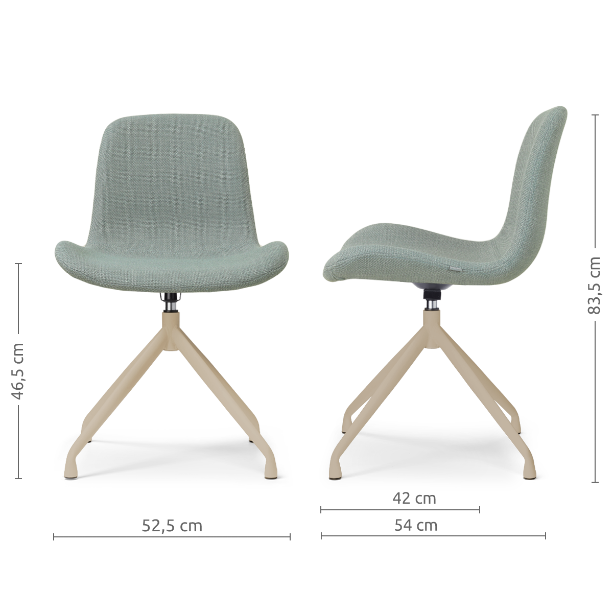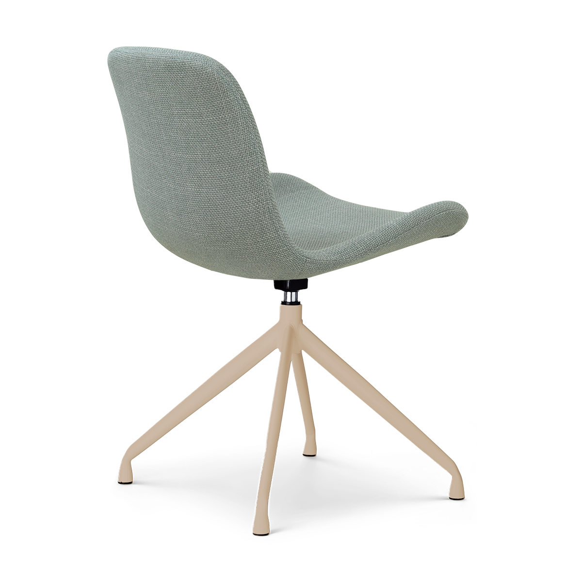 De Nola-Fé draaibare eetkamerstoel met beige onderstel heeft een compacte en elegante vorm die comfort en stijl op een subtiele manier samenbrengt.