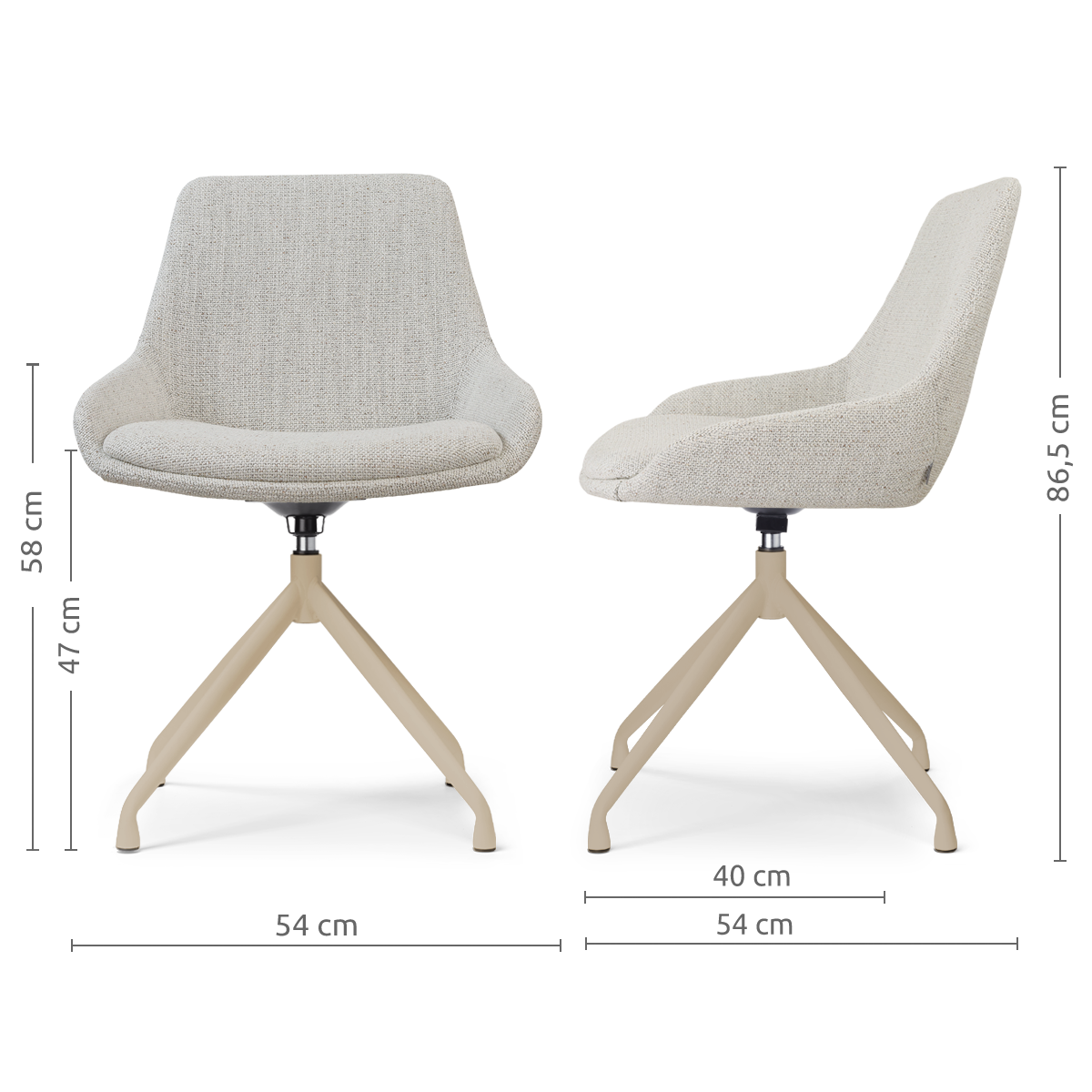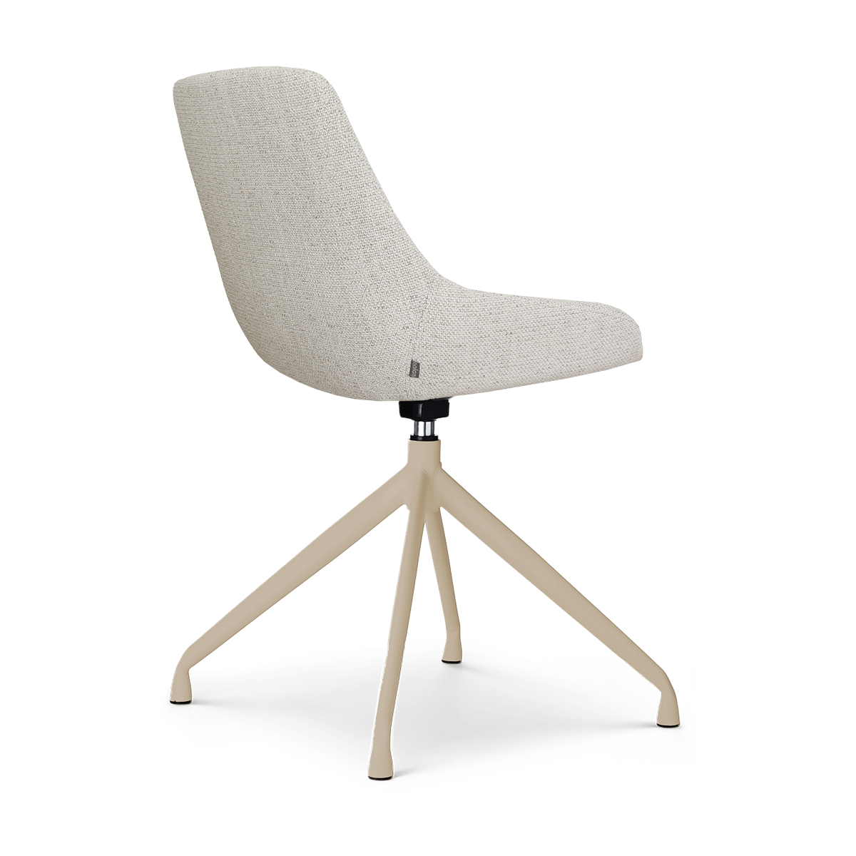 De Nola-Isa draaibare eetkamerstoel met beige onderstel combineert een modern ontwerp met een warme, rustige uitstraling en past daardoor perfect in een stijlvolle eethoek.