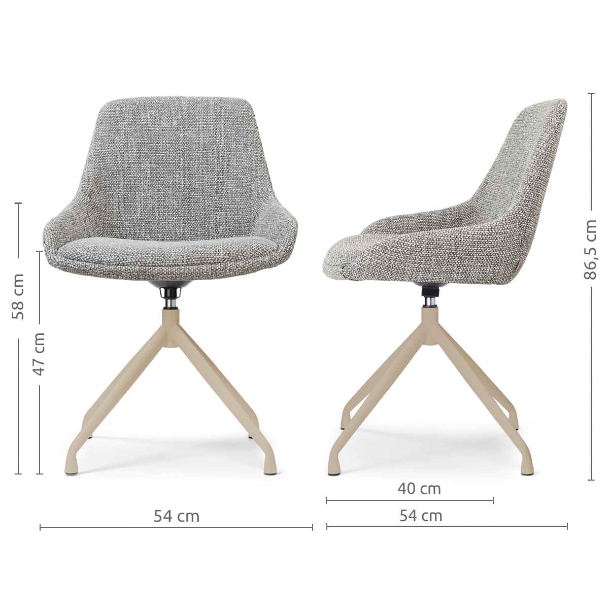 De Nola-Isa draaibare eetkamerstoel met beige onderstel combineert een modern ontwerp met een warme, rustige uitstraling en past daardoor perfect in een stijlvolle eethoek.
