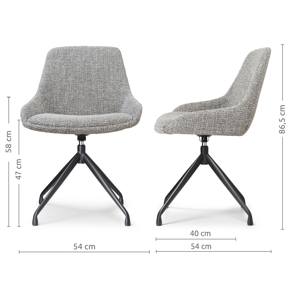 De eetkamerstoel heeft een comfortabele zitting met een sterk houten binnenwerk, waardoor je rug veel ondersteuning krijgt en je gemakkelijk een actieve zithouding aanneemt. Het gevoerde zitvlak zorgt voor veel comfort, evenals de zachte stoffen bekleding. Het metalen onderstel heeft een draaimechanisme, waardoor de zitting 360 graden op het onderstel kan draaien. Dit maakt van de Nola-Isa een uiterst functionele en flexibele stoel aan de eettafel. Maak een keuze uit de verschillende kleuren en materialen zitting, waaronder het trendy en onderhoudsvriendelijke bouclé stof, aan de hand van jouw persoonlijke smaak. De combinatie van het strakke ontwerp en de warme kleuropties van de bekleding geeft deze stoel een tijdloze, elegante uitstraling die bij elke inrichting past.