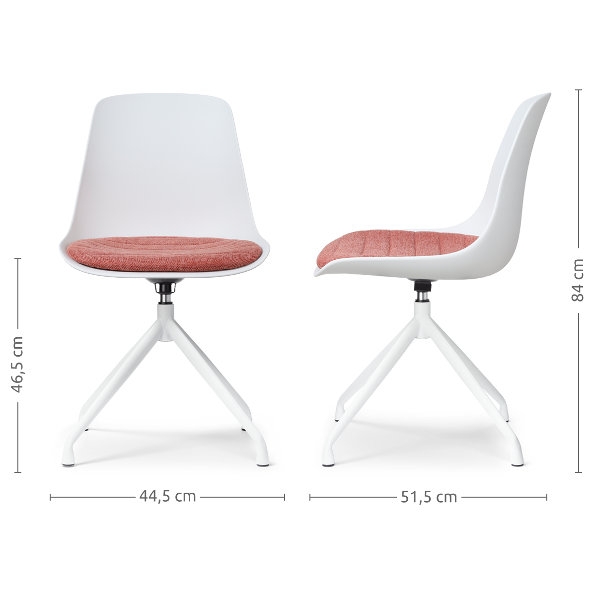 Nola-Liv draaibare eetkamerstoel wit met terracotta rood zitkussen - wit onderstel