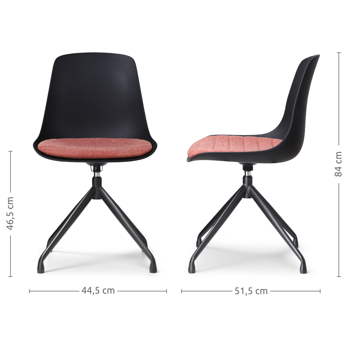 Nola-Liv draaibare eetkamerstoel zwart met terracotta rood zitkussen - zwart onderstel