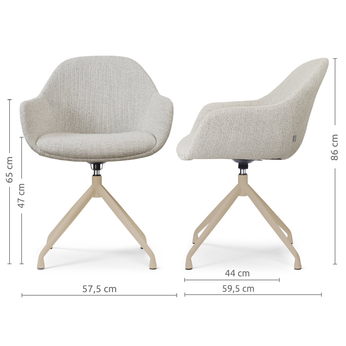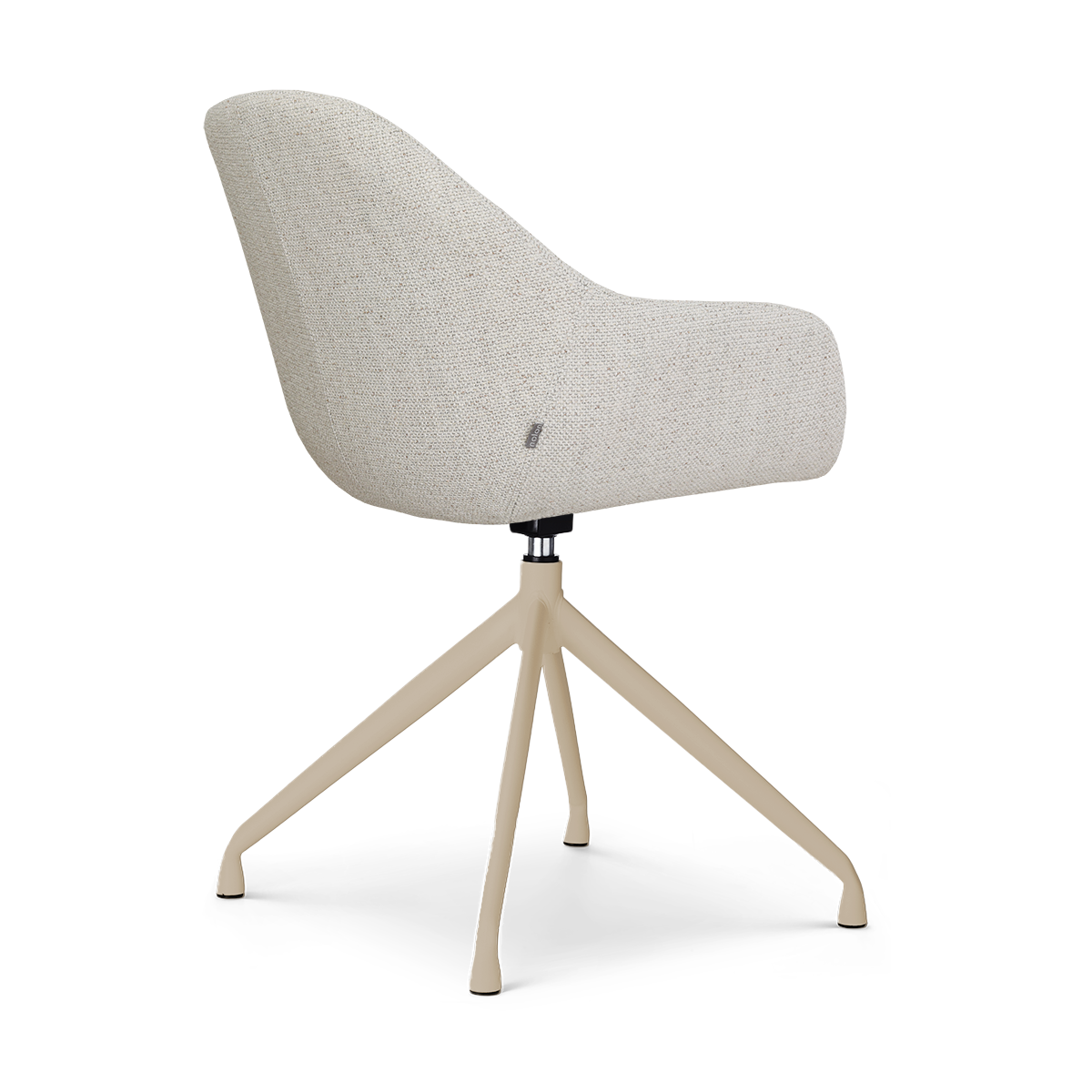 De Nola-Mae draaibare eetkamerstoel met beige onderstel brengt warmte en rust samen en past moeiteloos in je eethoek.