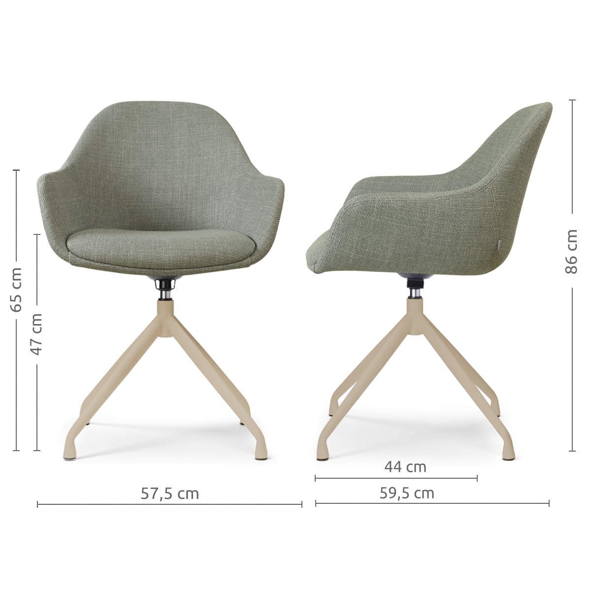 De Nola-Mae draaibare eetkamerstoel met beige onderstel brengt warmte en rust samen en past moeiteloos in je eethoek.