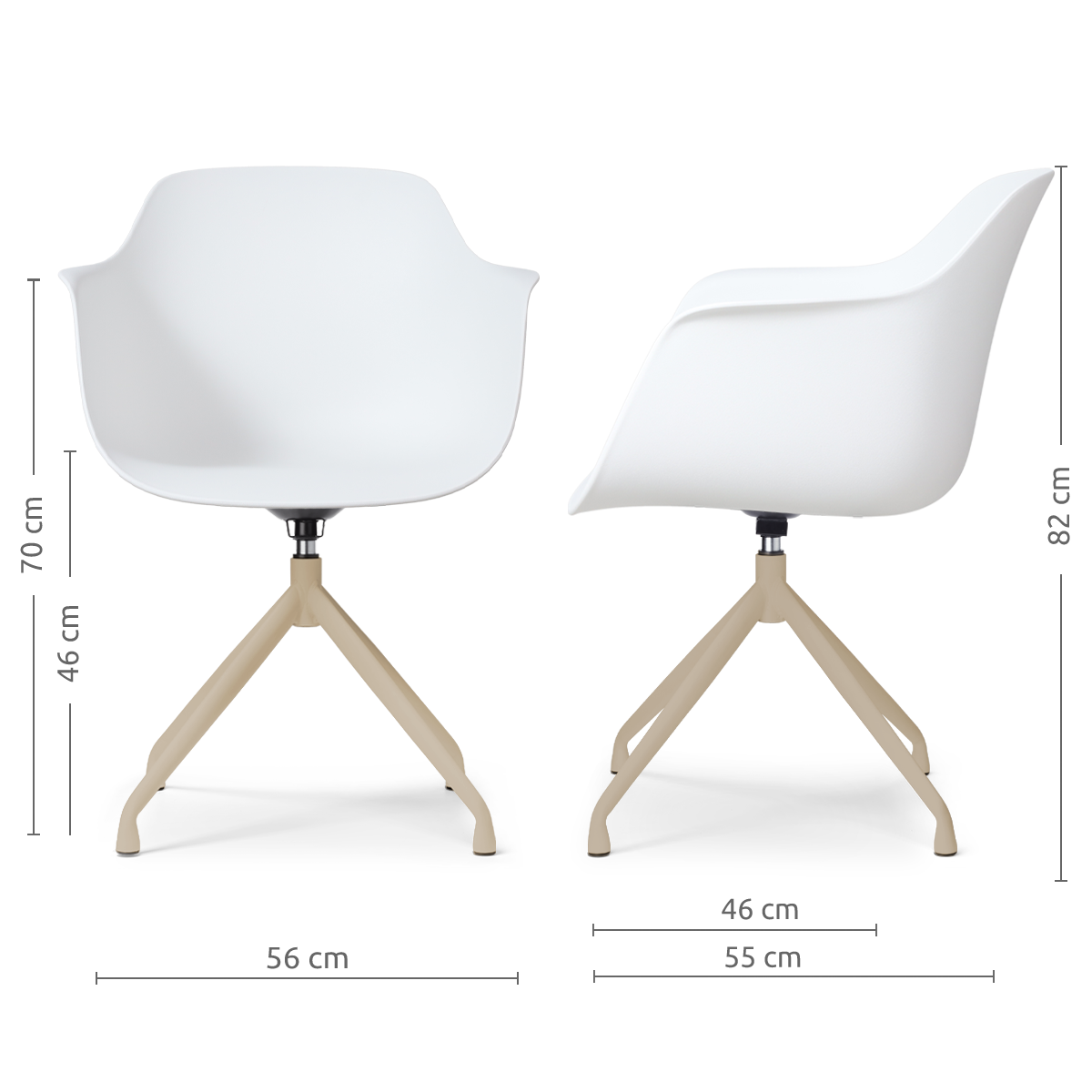 De Nola-Puk draaibare eetkamerstoel met beige onderstel heeft een frisse en moderne uitstraling en is een praktische keuze voor dagelijks gebruik aan de eettafel. Dankzij het strakke ontwerp en de kunststof zitting past deze stoel moeiteloos in verschillende interieurstijlen.