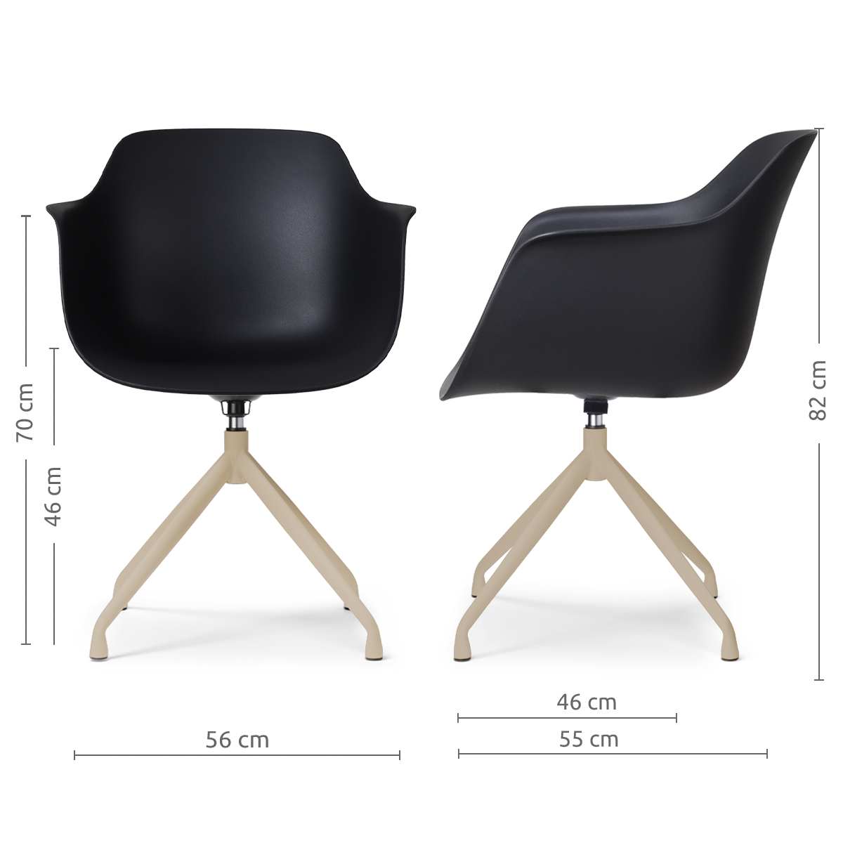 Deze draaibare eetkamerstoel van Nolon maakt deel uit van een mix & match collectie. De Puk zitting is verkrijgbaar in wit en zwart en het draaibare onderstel is er naast beige ook in zwart en wit. Heb je al een zitting op het oog? Dan kun je kiezen uit meer dan 20 verschillende onderstellen van Nolon. En andersom werkt het net zo goed: dit onderstel laat zich combineren met verschillende zittingen uit de collectie — met of zonder armleuningen, in stof of kunststof en in diverse vormen. Zo stel je zelf je unieke stoel samen, die past bij jouw interieur.
