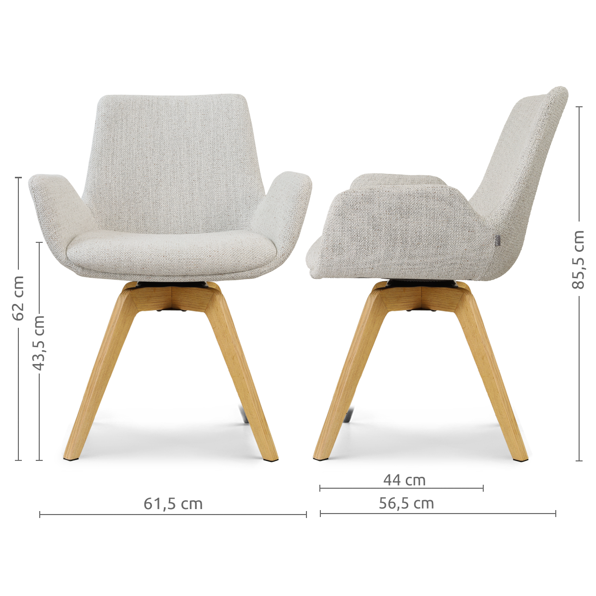 Noor-Eef draaibare eetkamerstoel beige gemêleerd - houten onderstel