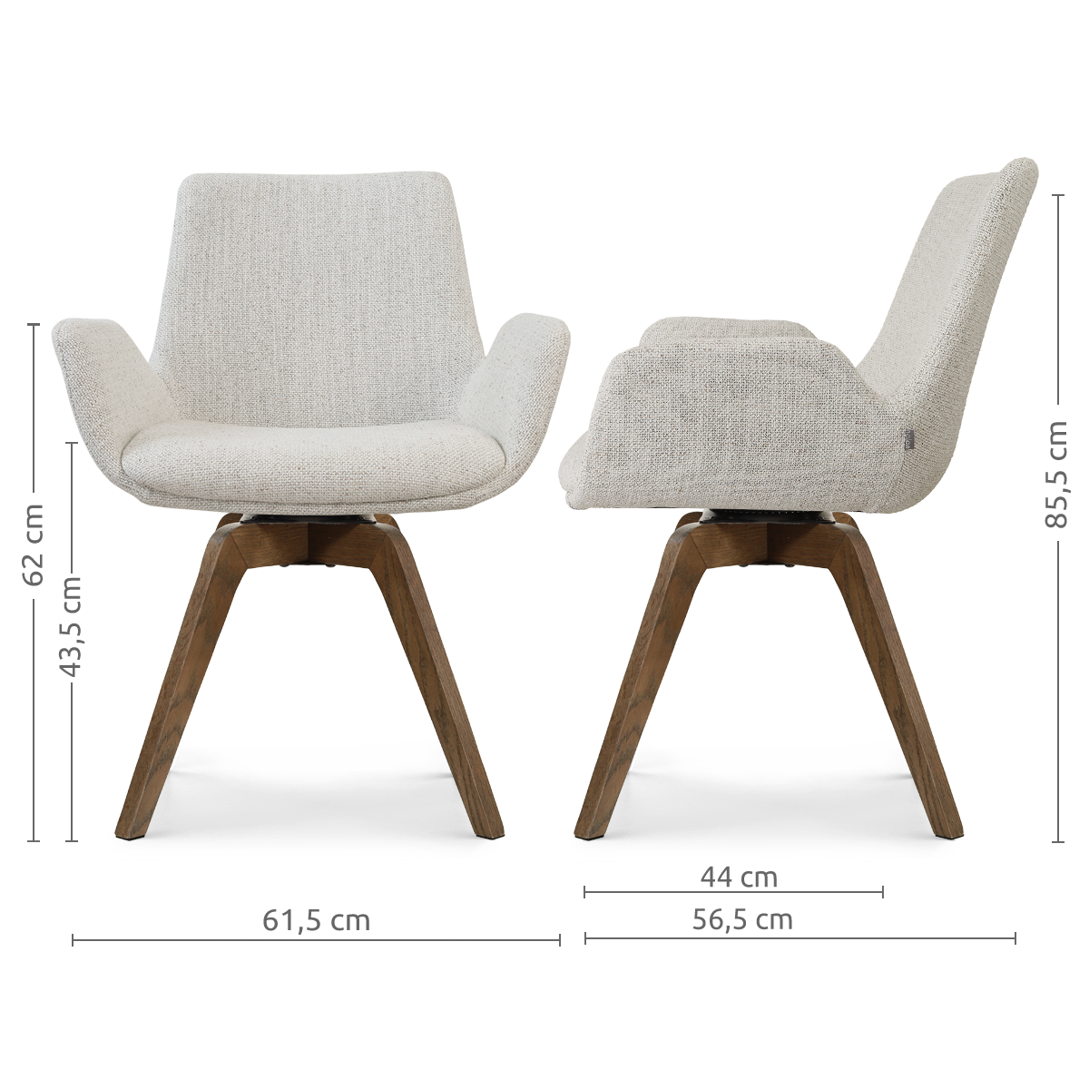 Noor-Eef draaibare eetkamerstoel beige gemêleerd - walnoot houten onderstel