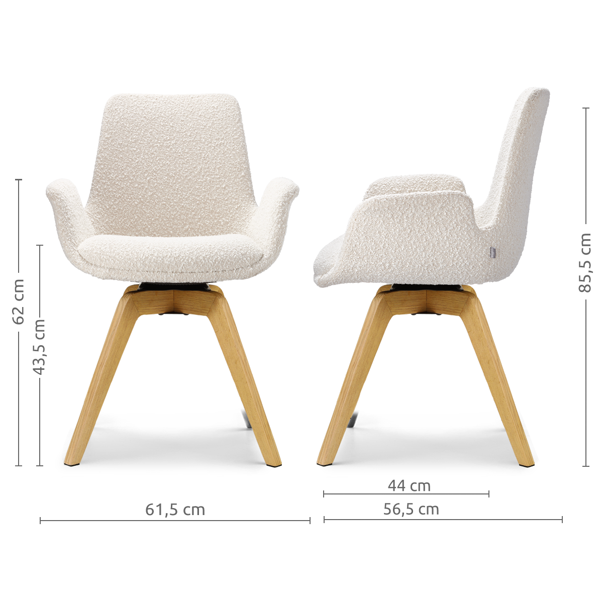 Noor-Eef draaibare eetkamerstoel bouclé beige - houten onderstel