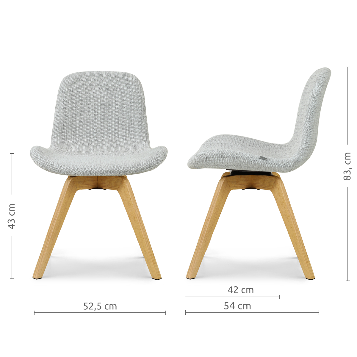Noor-Fé draaibare eetkamerstoel grijs melange - houten onderstel