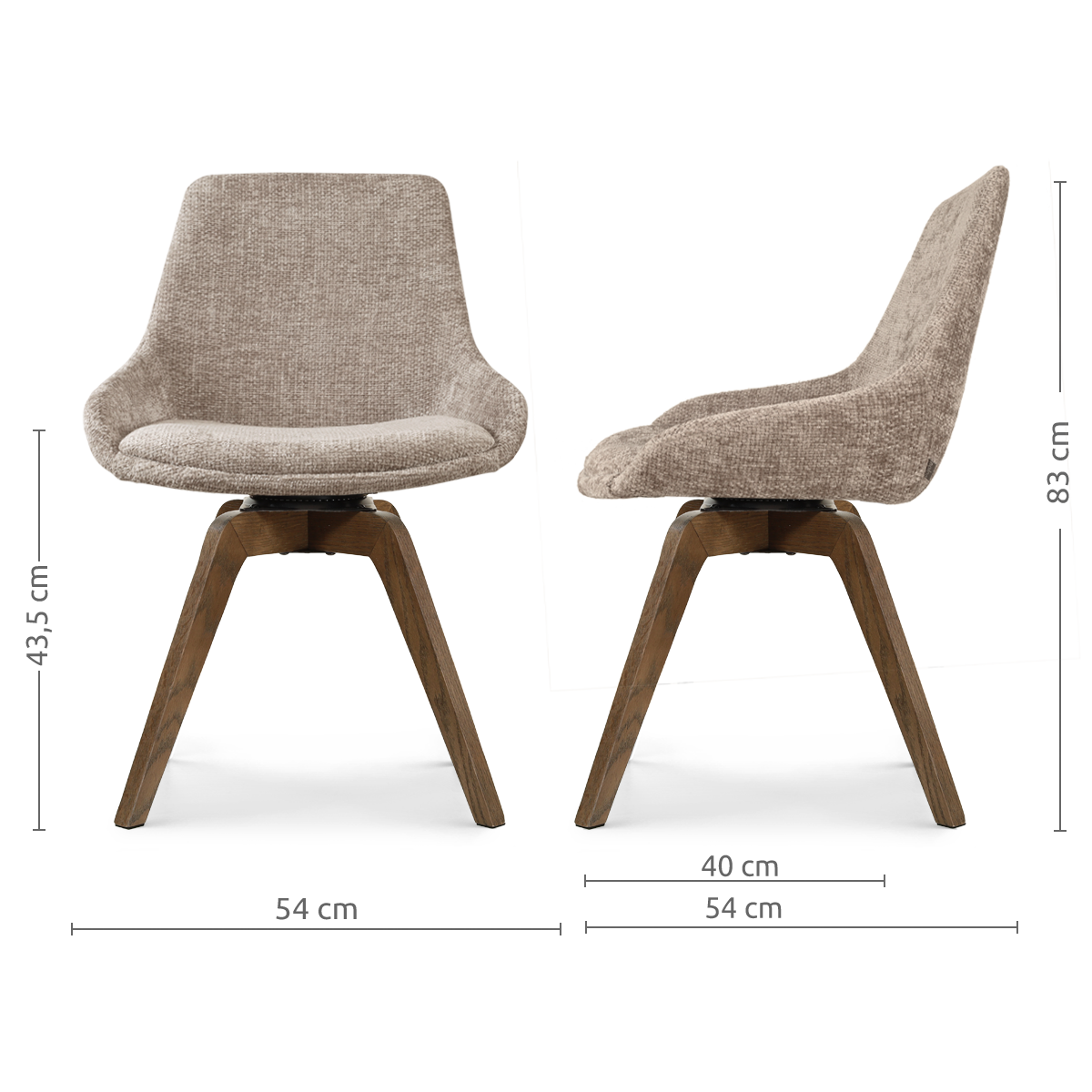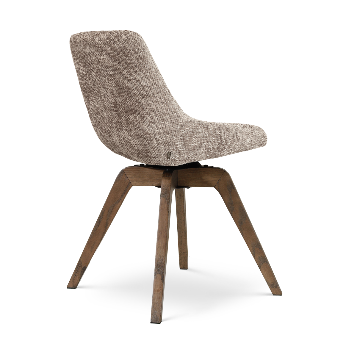 Noor-Isa draaibare eetkamerstoel bruin - walnoot houten onderstel