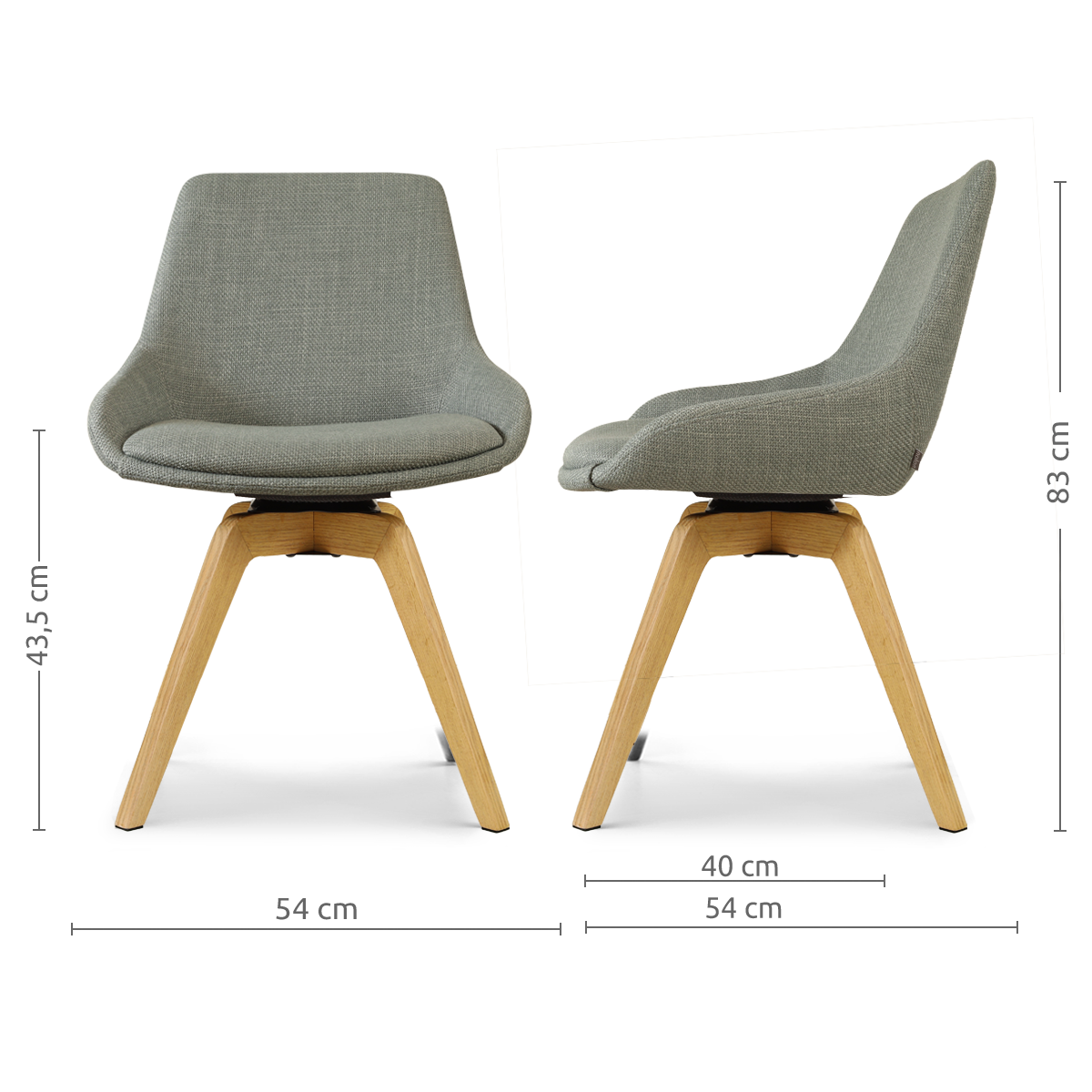Noor-Isa draaibare eetkamerstoel saliegroen - houten onderstel
