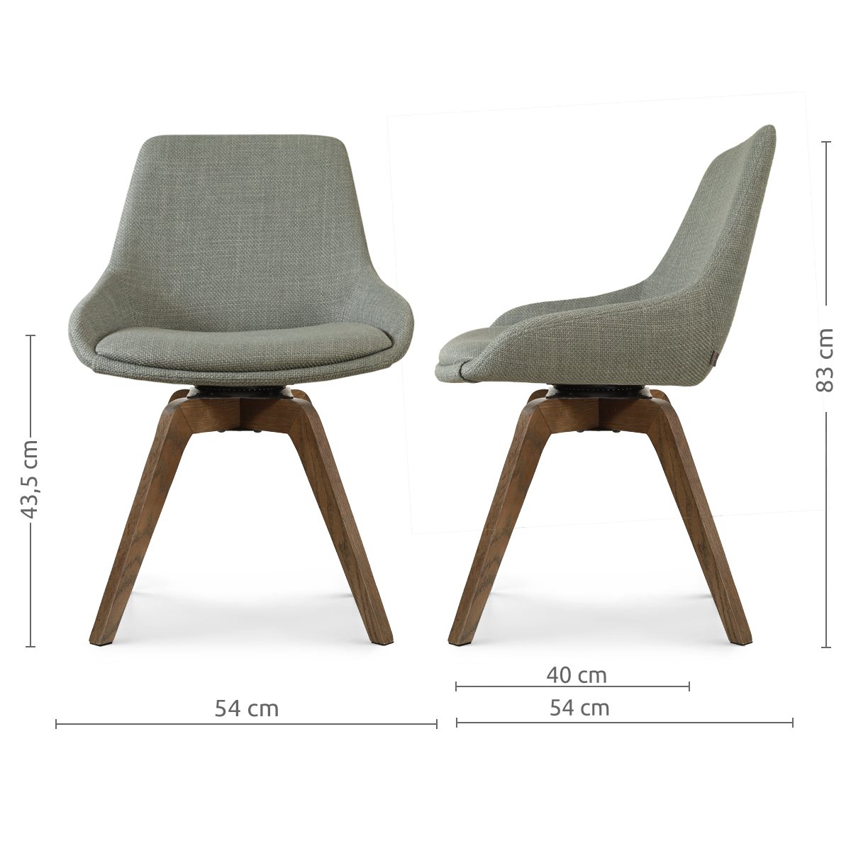 Noor-Isa draaibare eetkamerstoel saliegroen - walnoot houten onderstel