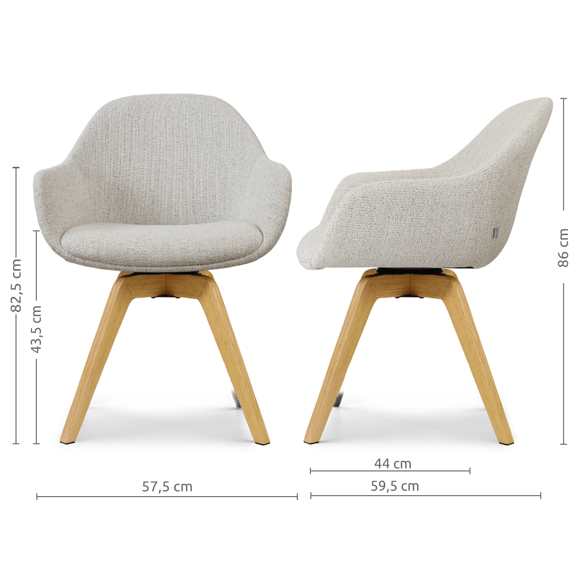 Noor-Mae draaibare eetkamerstoel beige gemêleerd - houten onderstel