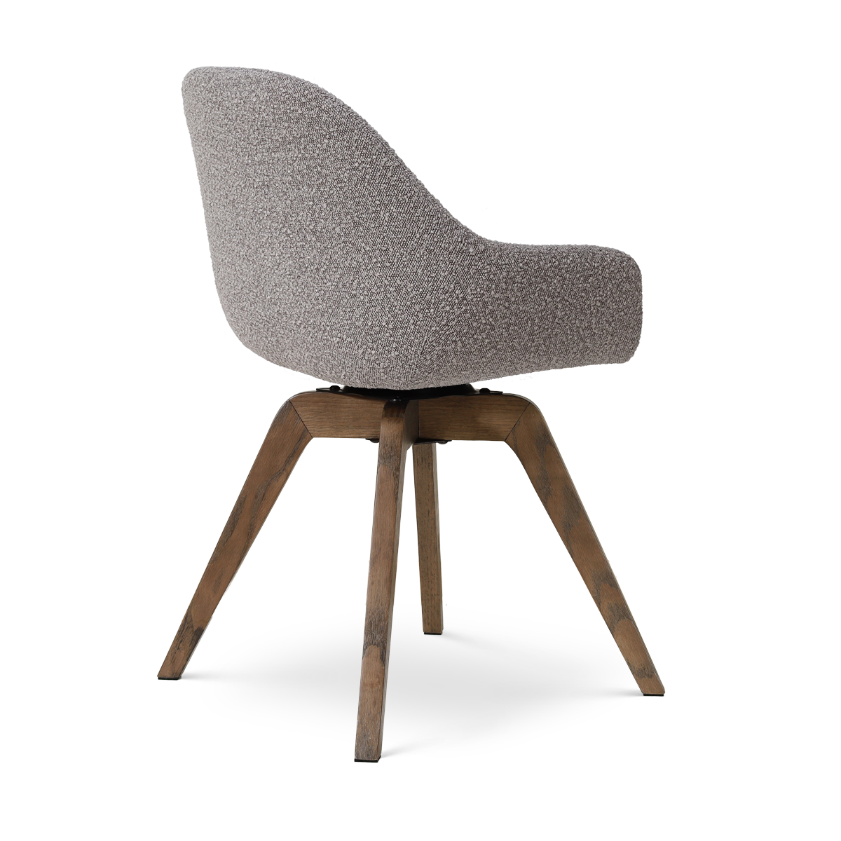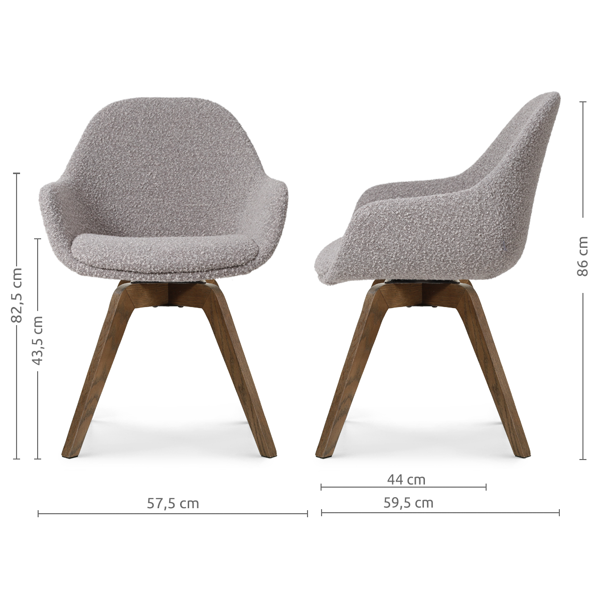 Noor-Mae draaibare eetkamerstoel bouclé taupe - walnoot houten onderstel