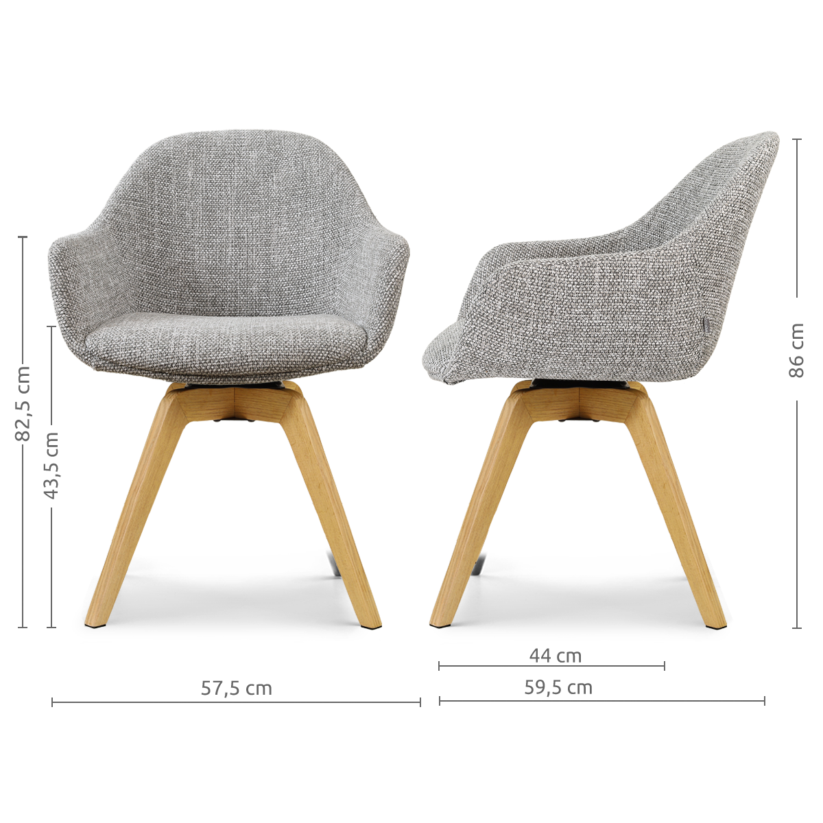Noor-Mae draaibare eetkamerstoel grijs blend - houten onderstel