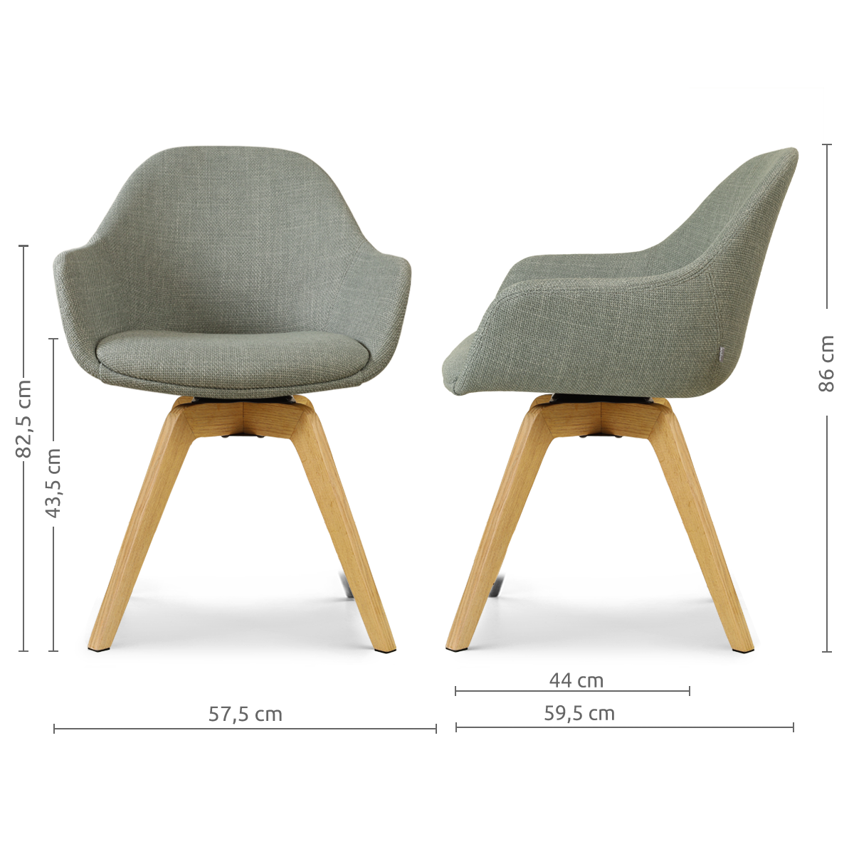 Noor-Mae draaibare eetkamerstoel saliegroen - houten onderstel