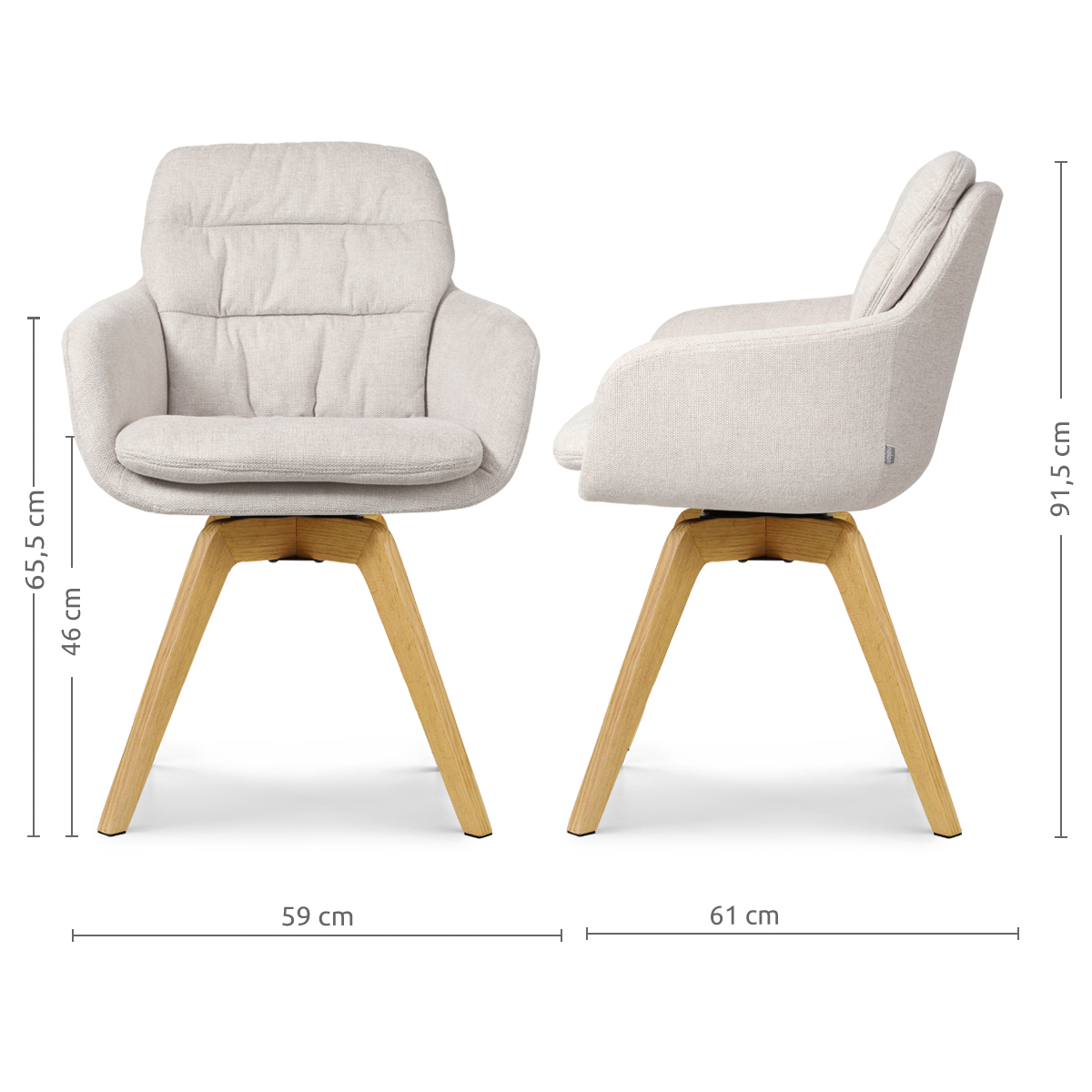 Noor-Mia draaibare eetkamerstoel beige - houten onderstel