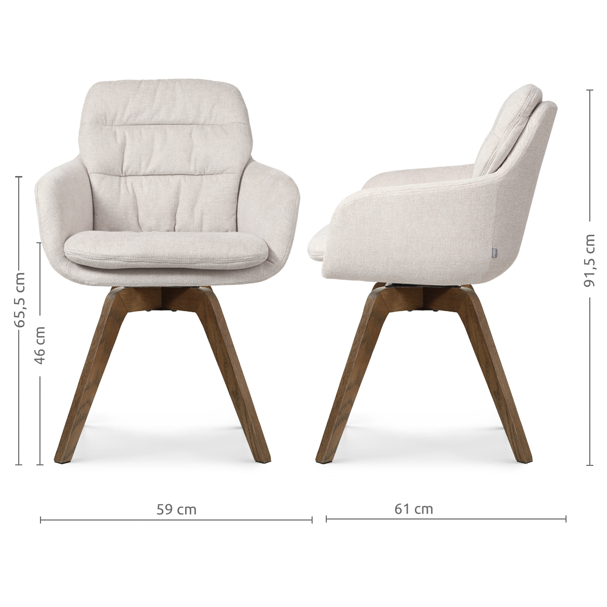 Noor-Mia draaibare eetkamerstoel beige - walnoot houten onderstel
