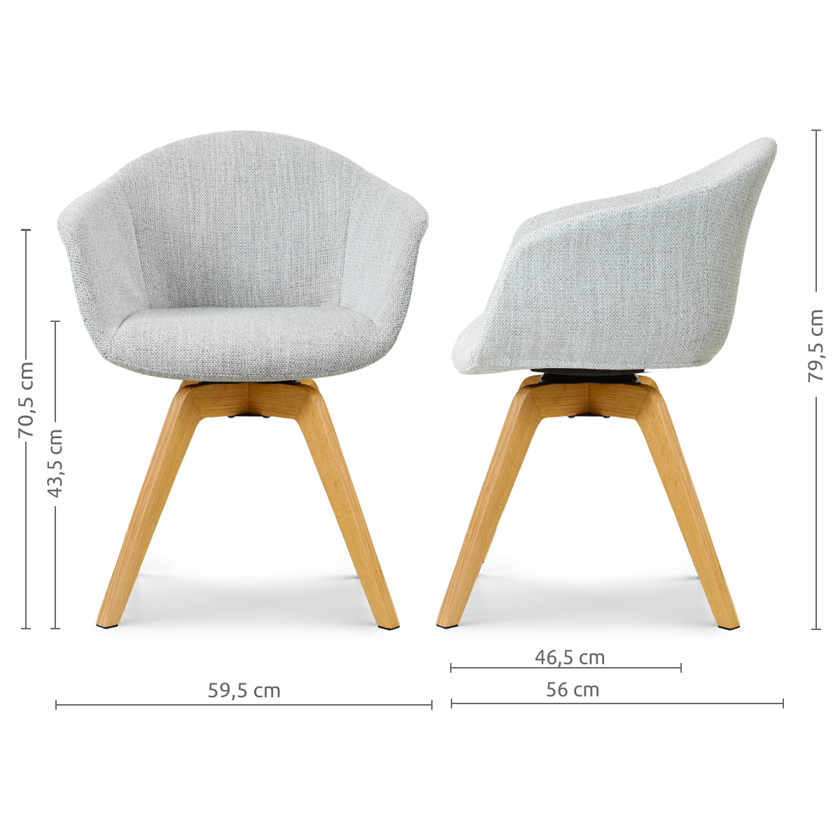 Noor-Otis draaibare eetkamerstoel grijs melange - houten onderstel