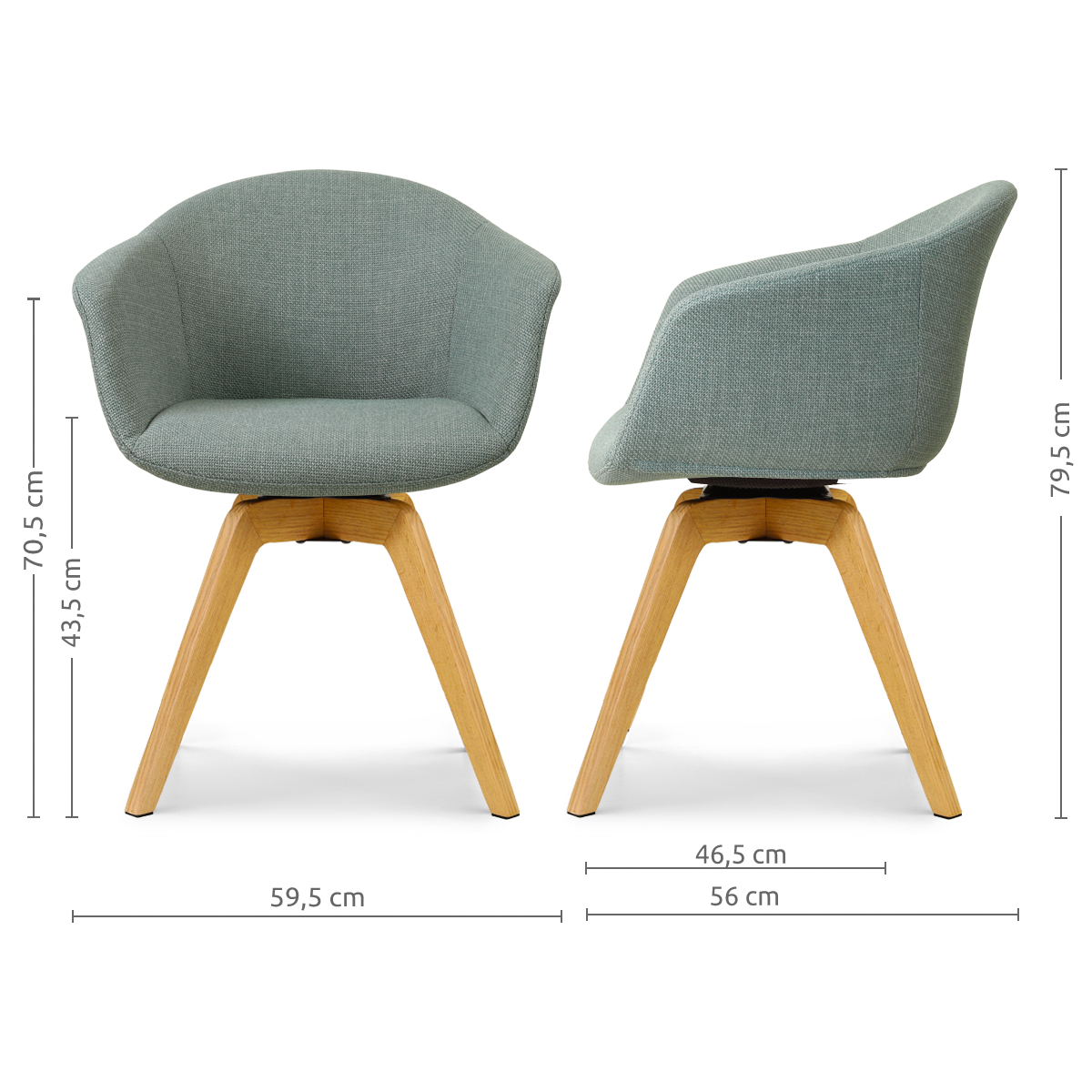Noor-Otis draaibare eetkamerstoel saliegroen - houten onderstel