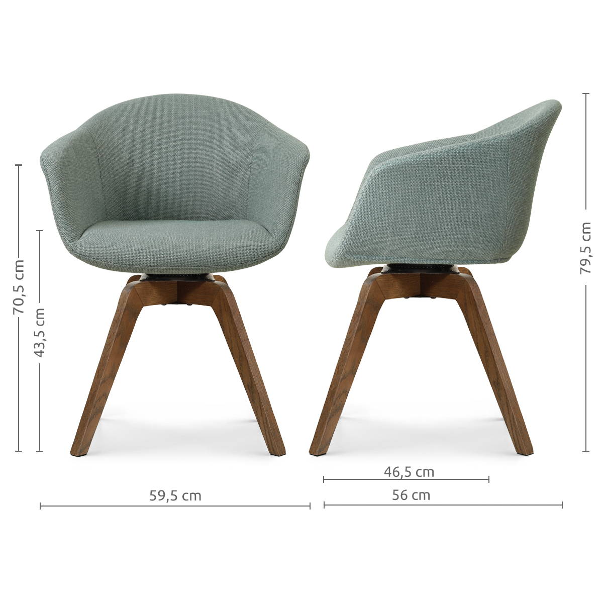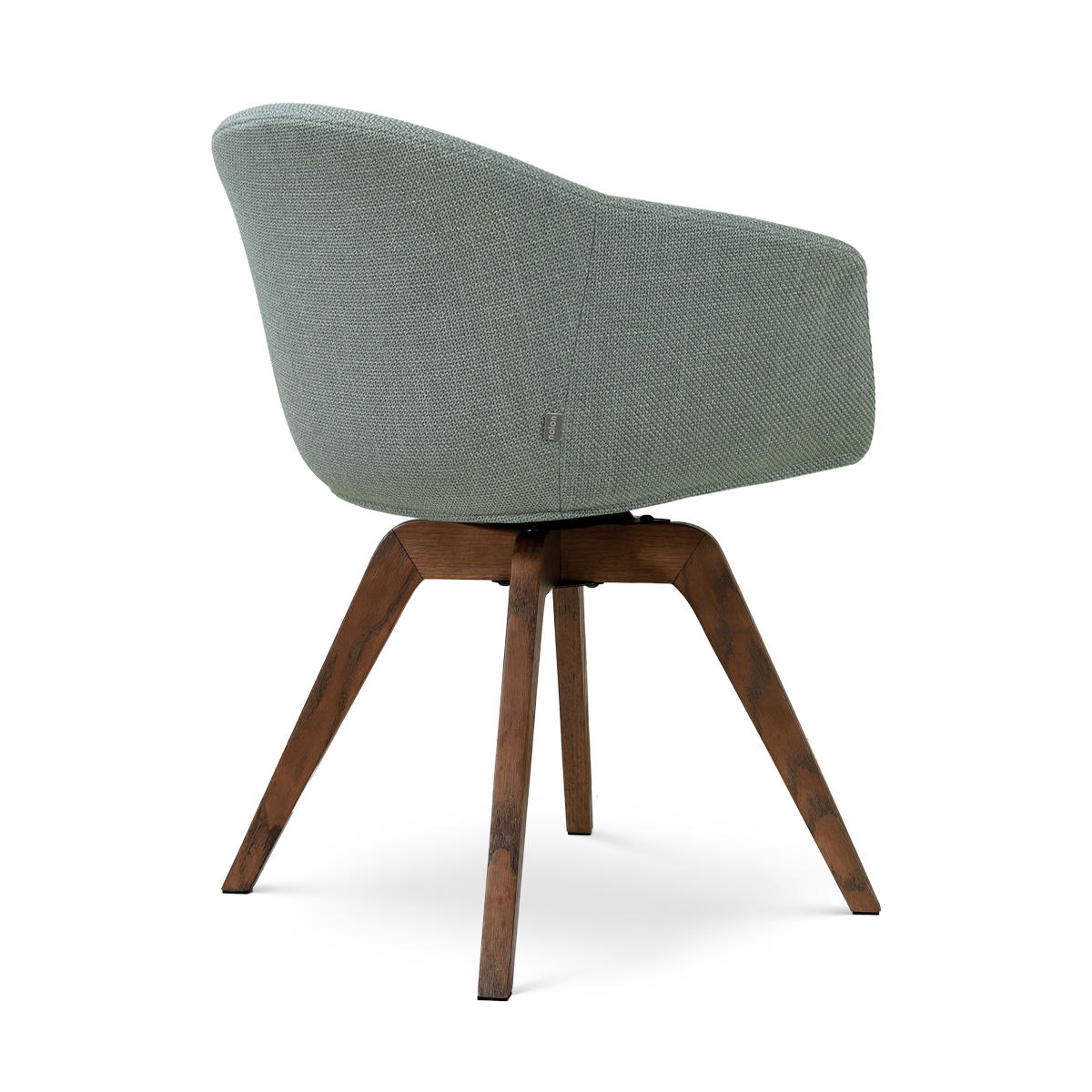 Noor-Otis draaibare eetkamerstoel saliegroen - walnoot houten onderstel