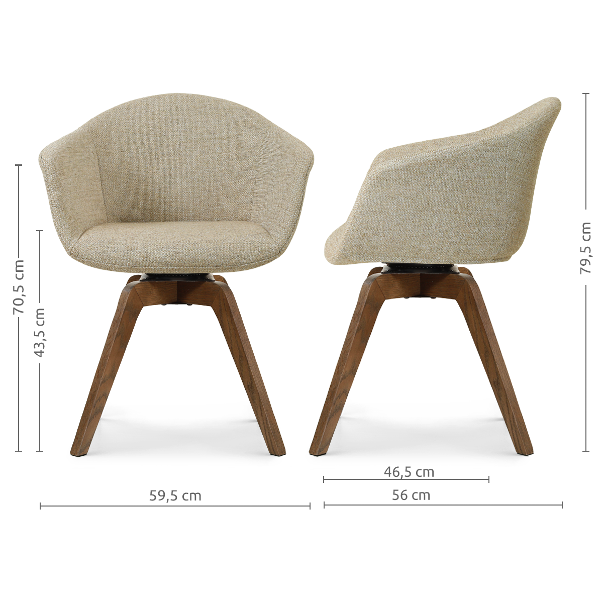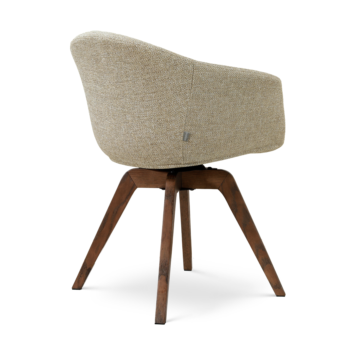 Noor-Otis draaibare eetkamerstoel taupe melange - walnoot houten onderstel