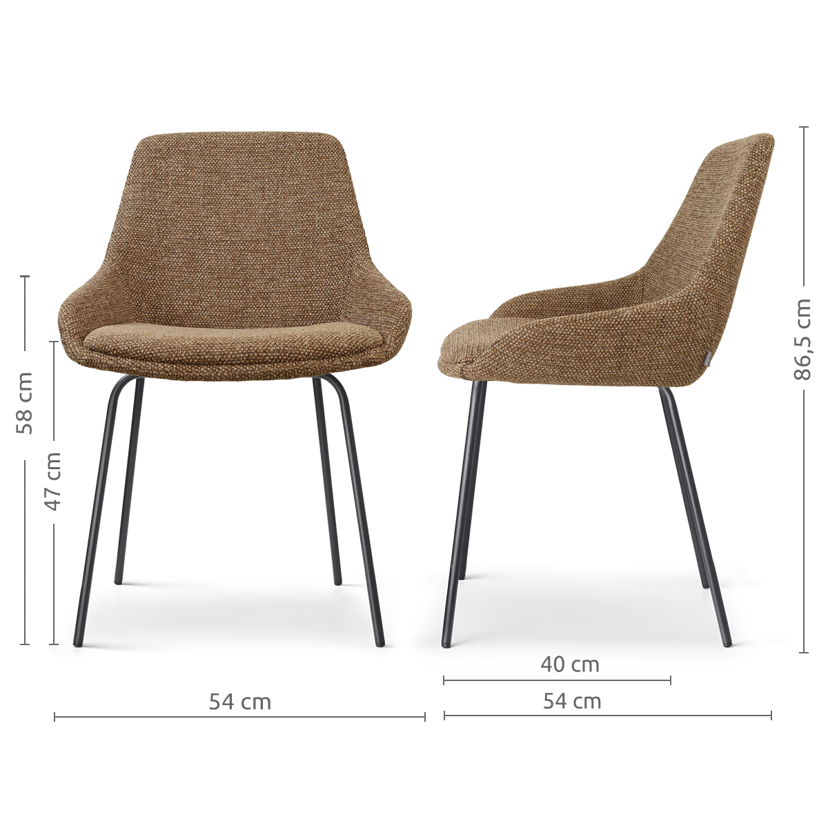 Nora-isa eetkamerstoel bruin blend - zwart onderstel