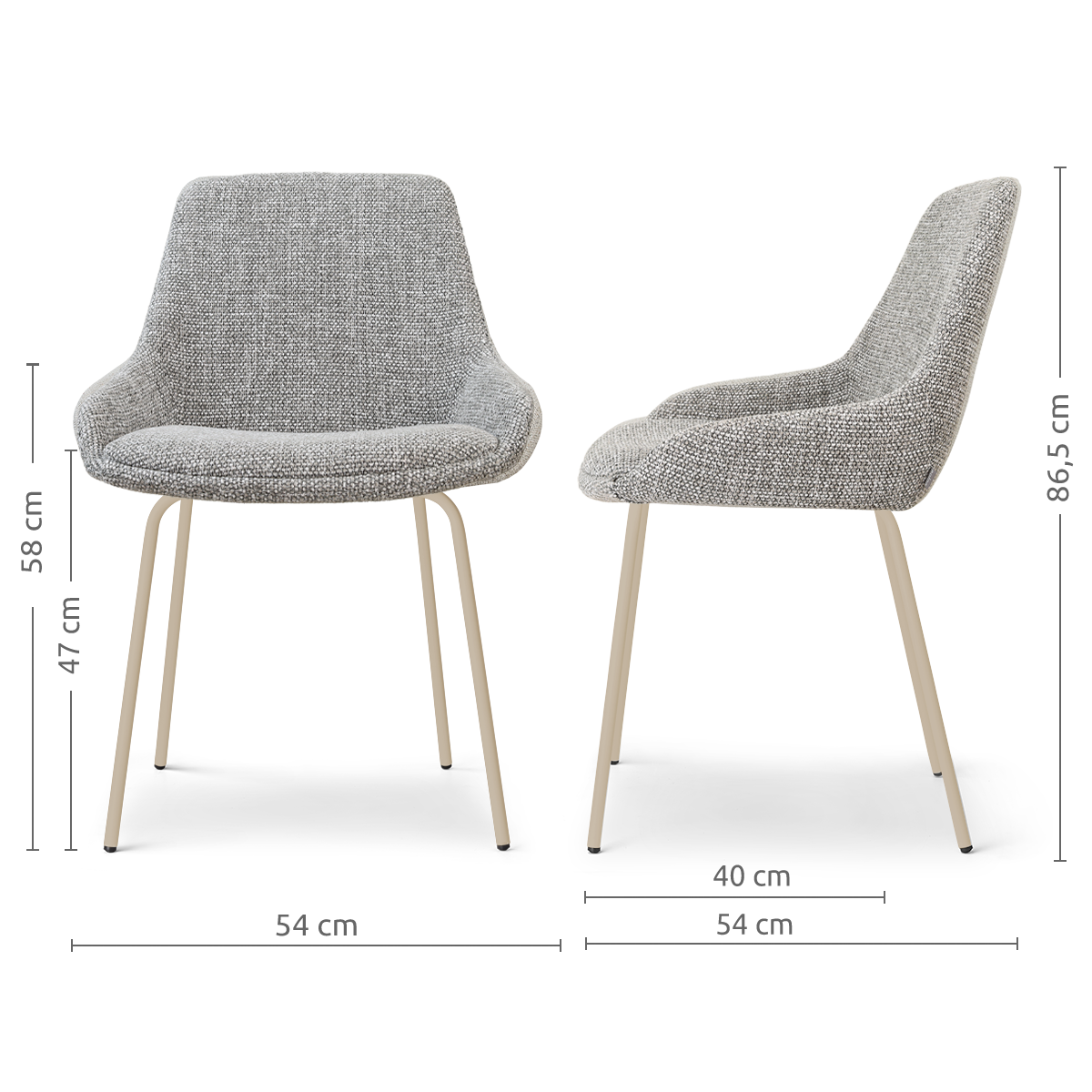 Nora-Isa eetkamerstoel grijs blend - beige onderstel