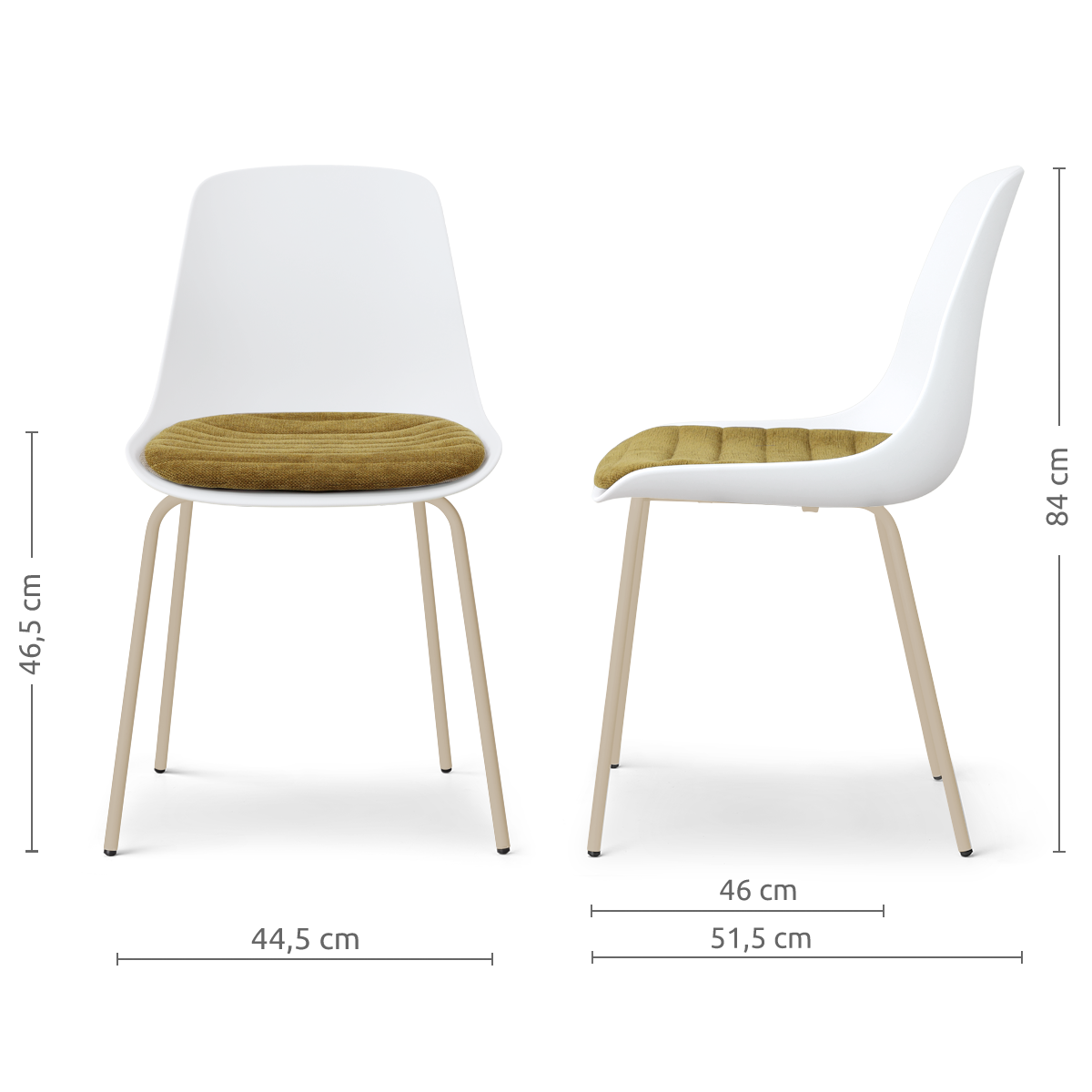 De Nora-Liv eetkamerstoel met beige metalen onderstel van Nolon combineert een strak design met extra zitcomfort. De kunststof kuipzitting zorgt voor een moderne uitstraling, terwijl het vaste zitkussen een zachte en comfortabele zitervaring toevoegt. Hierdoor ontstaat een mooie balans tussen stijl en praktisch gebruiksgemak. De licht gebogen rugleuning ondersteunt de rug op een natuurlijke manier, terwijl het vaste zitkussen zorgt voor extra comfort tijdens het eten of natafelen. Dankzij de combinatie van kunststof en bekleding voelt de stoel comfortabel aan en blijft hij tegelijkertijd eenvoudig in onderhoud. Het slanke zwarte metalen Nora onderstel geeft de stoel een moderne en luchtige uitstraling. De ranke poten vormen een stabiele basis en laten het minimalistische ontwerp van de zitting mooi naar voren komen. Door het tijdloze ontwerp past deze kunststof eetkamerstoel met vast zitkussen perfect in een modern, Scandinavisch of industrieel interieur. Combineer meerdere stoelen rond de eettafel voor een rustig geheel of mix verschillende kleuren zitkussens voor een speels en persoonlijk effect in de eetkamer. Tips & adviesMet een paar eenvoudige tips blijft je stoel mooi en prettig in gebruik: