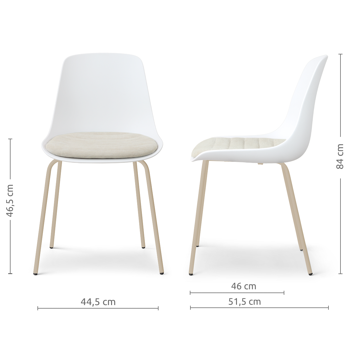 Nora-Liv eetkamerstoel wit met naturelbeige zitkussen - beige onderstel