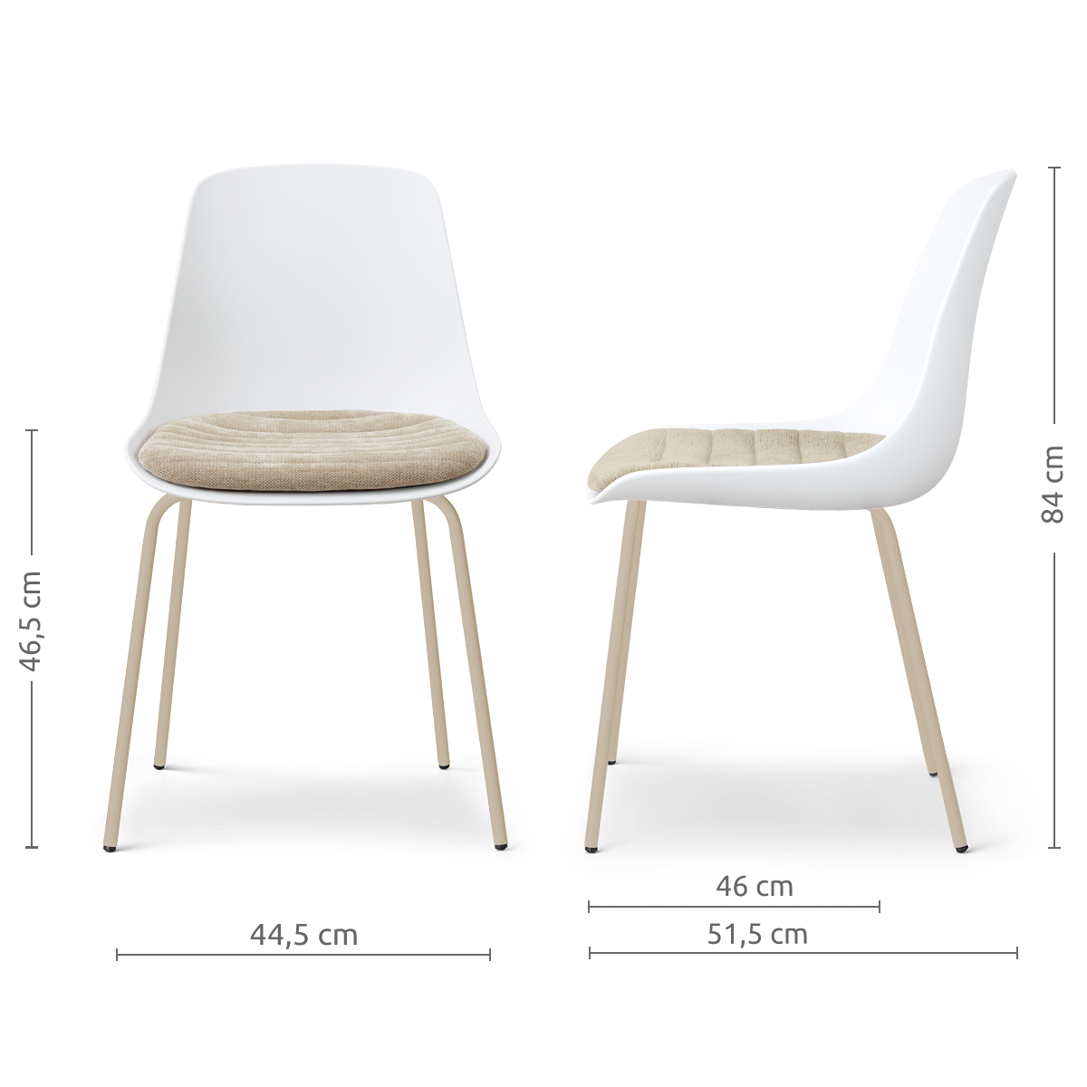 De Nora-Liv eetkamerstoel met beige metalen onderstel van Nolon combineert een strak design met extra zitcomfort. De kunststof kuipzitting zorgt voor een moderne uitstraling, terwijl het vaste zitkussen een zachte en comfortabele zitervaring toevoegt. Hierdoor ontstaat een mooie balans tussen stijl en praktisch gebruiksgemak. De licht gebogen rugleuning ondersteunt de rug op een natuurlijke manier, terwijl het vaste zitkussen zorgt voor extra comfort tijdens het eten of natafelen. Dankzij de combinatie van kunststof en bekleding voelt de stoel comfortabel aan en blijft hij tegelijkertijd eenvoudig in onderhoud. Het slanke zwarte metalen Nora onderstel geeft de stoel een moderne en luchtige uitstraling. De ranke poten vormen een stabiele basis en laten het minimalistische ontwerp van de zitting mooi naar voren komen. Door het tijdloze ontwerp past deze kunststof eetkamerstoel met vast zitkussen perfect in een modern, Scandinavisch of industrieel interieur. Combineer meerdere stoelen rond de eettafel voor een rustig geheel of mix verschillende kleuren zitkussens voor een speels en persoonlijk effect in de eetkamer. Tips & adviesMet een paar eenvoudige tips blijft je stoel mooi en prettig in gebruik:
