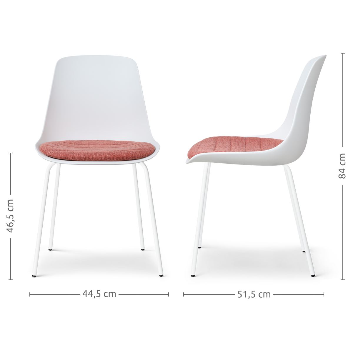 Nora-Liv eetkamerstoel wit met terracotta rood zitkussen - wit onderstel