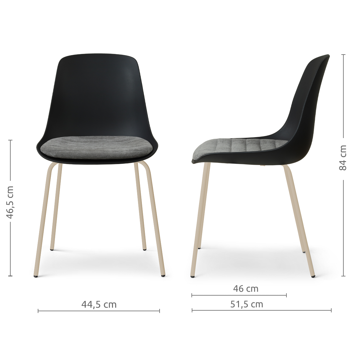 Nora-Liv eetkamerstoel zwart met zeegrijs zitkussen - beige onderstel