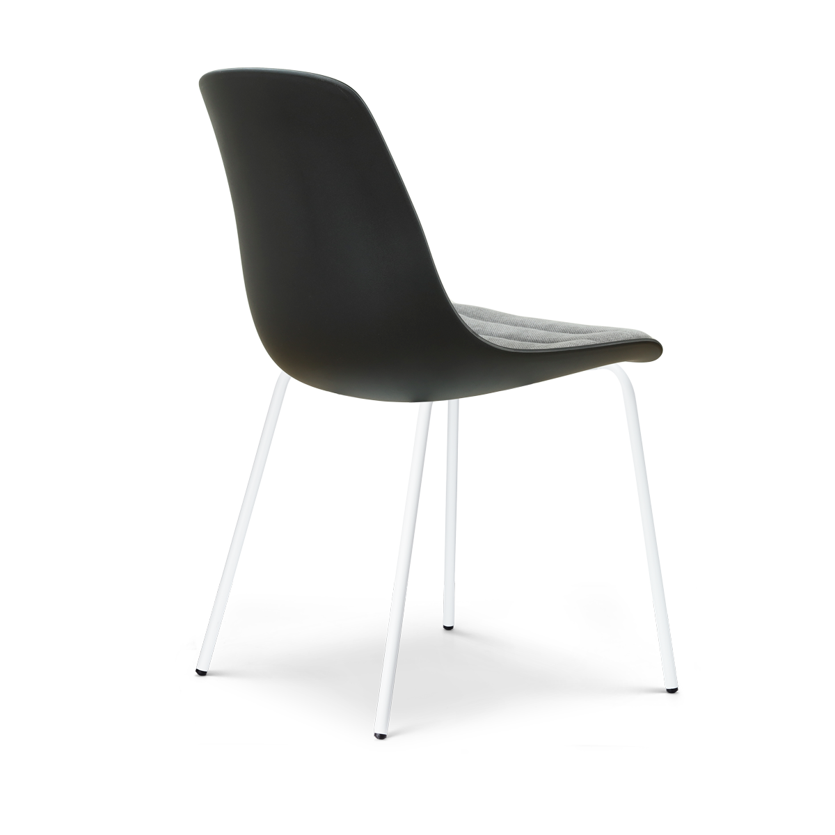 Nora-Liv eetkamerstoel zwart met zeegrijs zitkussen - wit onderstel