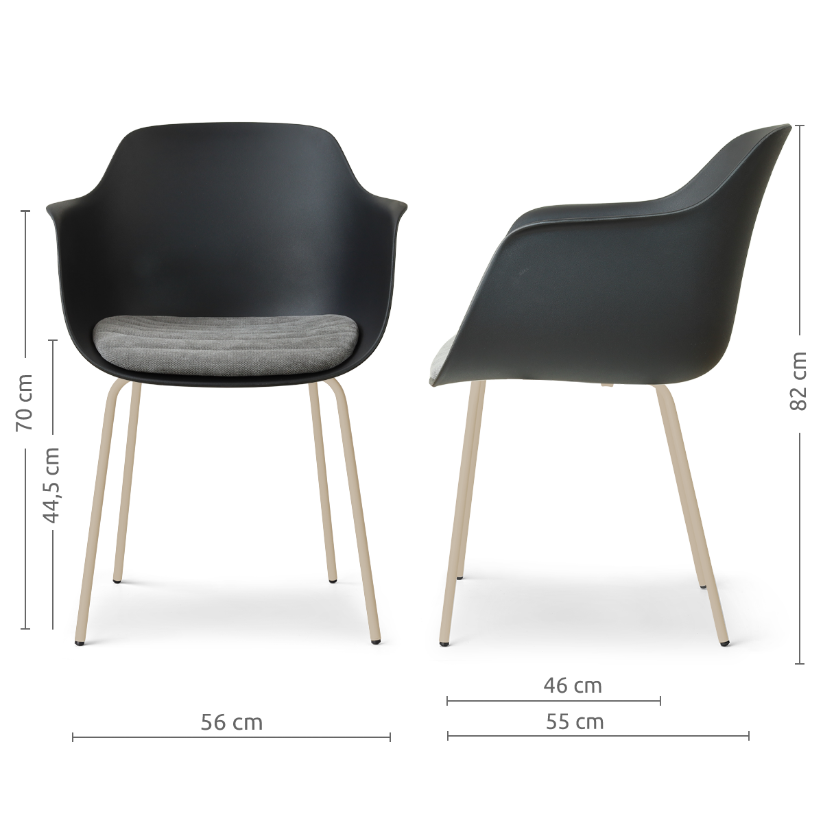 Nora-Liz eetkamerstoel zwart met zeegrijs zitkussen - beige onderstel