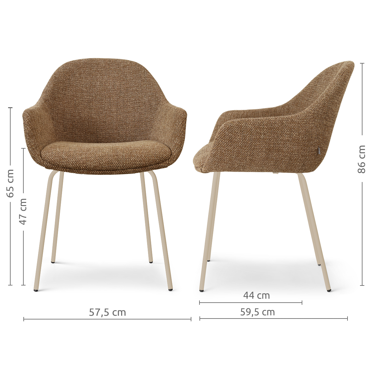 Combineer zoals het bij je pastDeze beige Nora eetkamerstoel met armleuningen van Nolon is onderdeel van een mix & match collectie. De Mae-zitting is verkrijgbaar in een selectie van verschillende natuurlijke kleuren, zoals Beige, Bouclé Taupe, Bouclé Beige, Beige Gemêleerd, Saliegroen, Grijs Blend, Bruin Blend, waardoor je eenvoudig een combinatie kiest die past bij jouw interieur. Twijfel je nog of deze combinatie helemaal bij je past? Binnen de Nolon-collectie kun je volop variëren. Zo is dit onderstel ook te combineren met andere zittingen, met of zonder armleuningen, in stof of kunststof. Het Nora onderstel is naast beige ook verkrijgbaar in zwart, wit. Zo stel je stap voor stap een stoel samen die perfect aansluit bij jouw interieur.