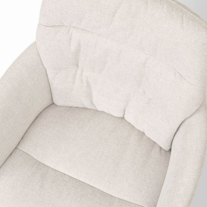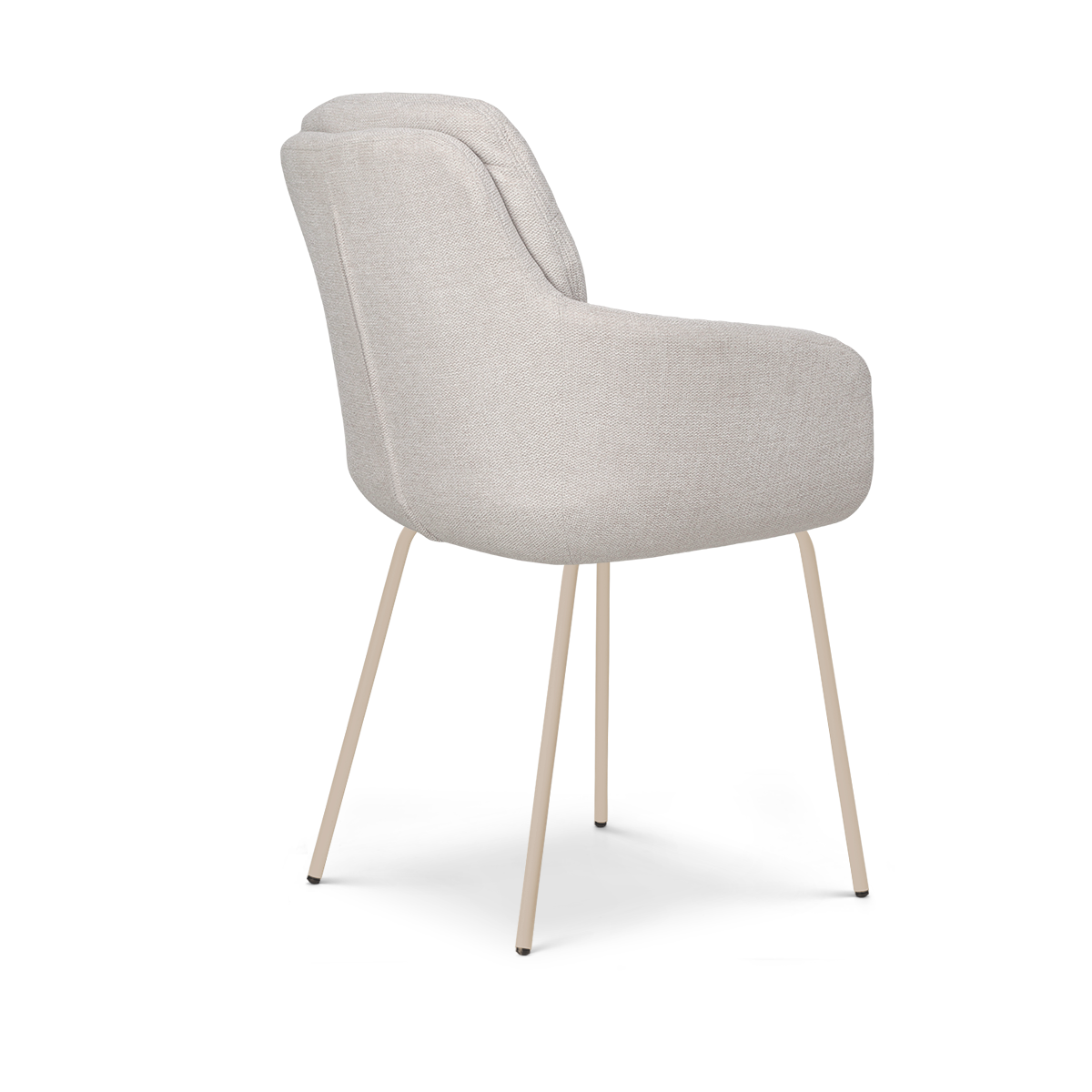 De verfijnde stoffen bekleding geeft de Nora-Mia een zachte en elegante uitstraling en zorgt voor een warme sfeer in de ruimte. De zitting is comfortabel gevormd en ondersteunt je prettig, waardoor je ontspannen aan tafel zit — ook wanneer het samenzijn wat langer duurt.