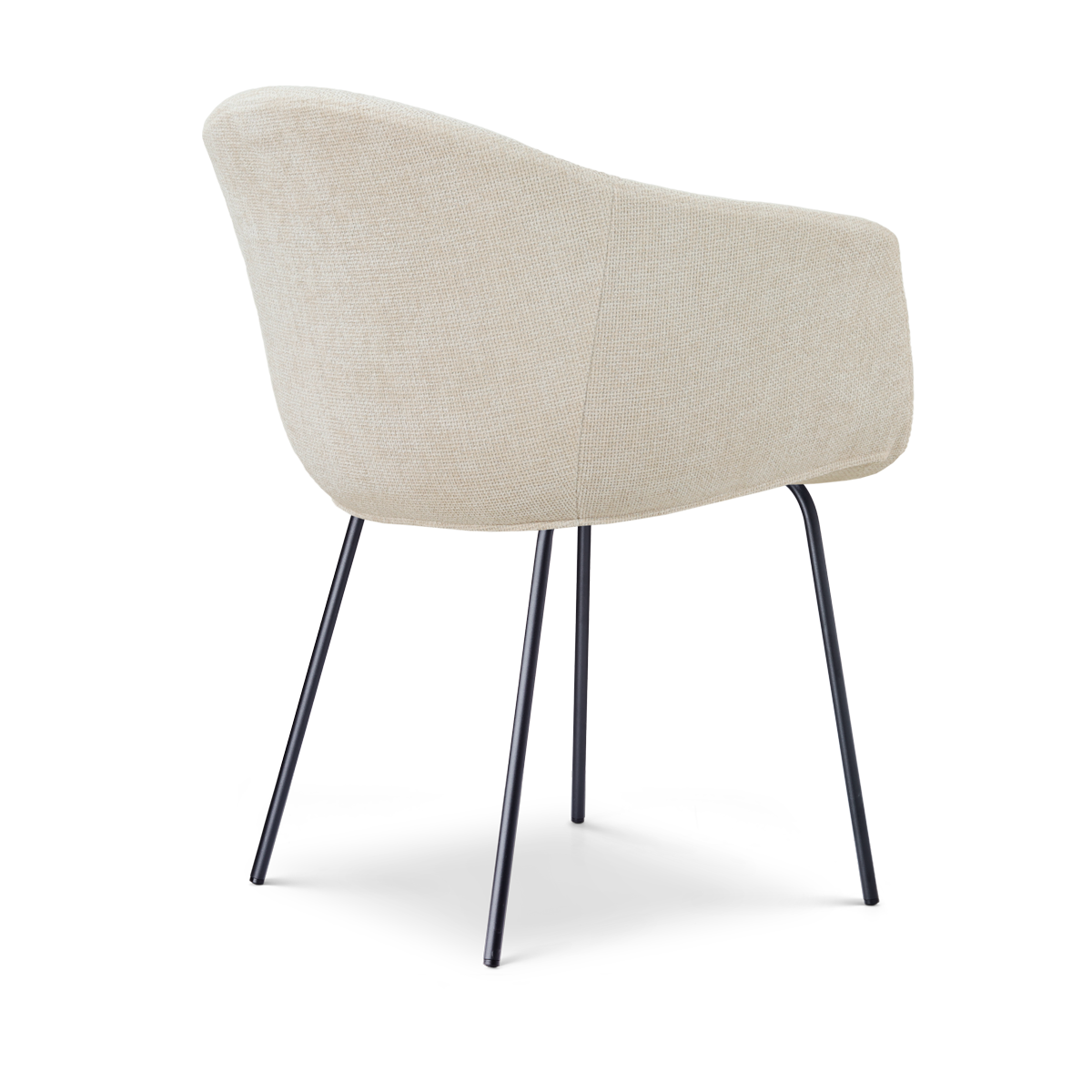 Elegante eetkamerstoel – beige stof met armleuningen en zwarte poten De Nora-Otis in cottonbeige straalt rust en warmte uit. De zwarte poten maken hem eigentijds en krachtig, waardoor hij in zowel moderne als Scandinavische eethoeken moeiteloos tot zijn recht komt. Onderhoudstips voor een lange levensduurMet deze tips houd je jouw eetkamerstoel zo lang mogelijk mooi: