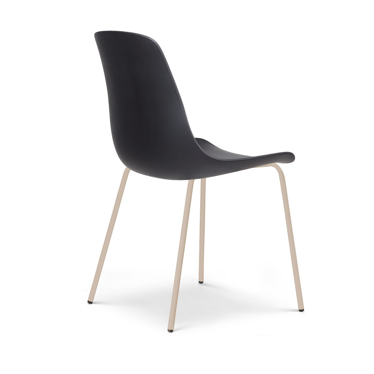 Het slanke zwarte metalen Nora onderstel zorgt voor een moderne en stabiele basis. De smalle poten geven de stoel een luchtig silhouet dat mooi aansluit bij de strakke vorm van de zitting.