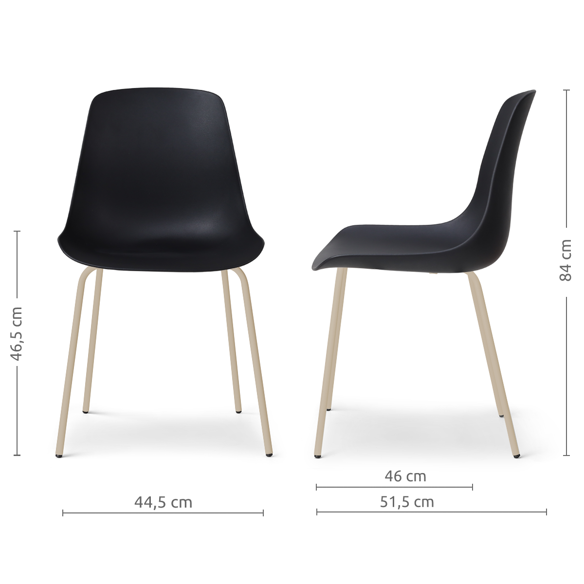 Door het minimalistische ontwerp past deze kunststof eetkamerstoel met metalen onderstel moeiteloos in een modern, Scandinavisch of industrieel interieur. Plaats meerdere stoelen rond de eettafel voor een strak geheel of combineer ze met andere stoelen voor een speelse mix.