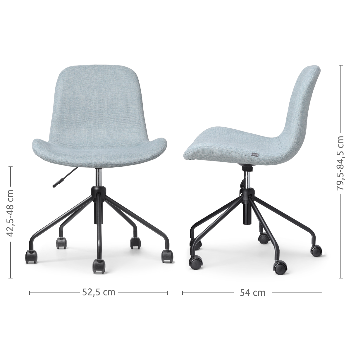 Nout-Fé bureaustoel lichtblauw - zwart onderstel