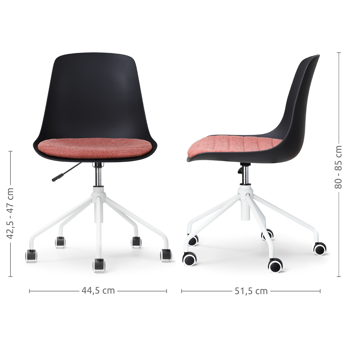 Nout-Liv bureaustoel zwart met terracotta rood zitkussen - wit onderstel
